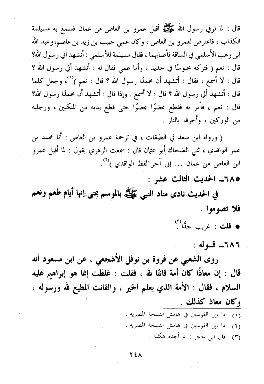 وَرَوَاهُ ابْن سعد فِي الطَّبَقَات فِي تَرْجَمَة عَمْرو بن الْعَاصِ أَنا مُحَمَّد بن عمر الْوَاقِدِيّ حَدثنِي الضَّحَّاك أَبُو عُثْمَان قَالَ سَمِعت الزُّهْرِيّ يَقُول لما أقبل عَمْرو ابْن الْعَاصِ من عمان ... إِلَى آخر لفظ الْوَاقِدِيّ