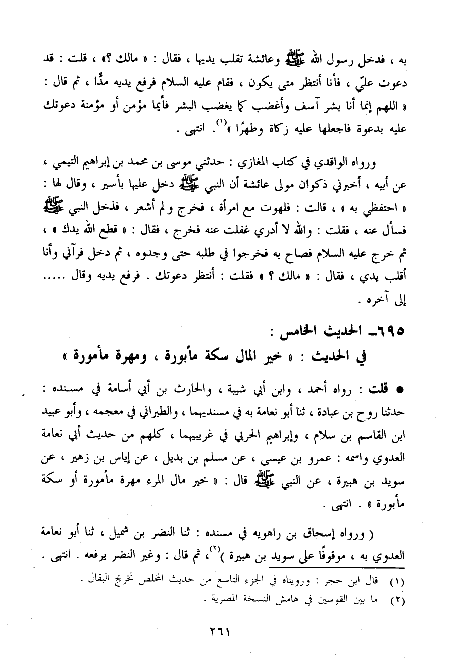 قلت رَوَاهُ أَحْمد وَابْن أبي شيبَة والْحَارث بن أبي أُسَامَة فِي مُسْنده حَدثنَا روح بن عبَادَة حَدثنَا أَبُو نعَامَة بِهِ فِي مسنديهما وَالطَّبَرَانِيّ فِي مُعْجَمه وَأَبُو عبيد ابْن الْقَاسِم بن سَلام وَإِبْرَاهِيم الْحَرْبِيّ فِي غريبيهما كلهم من حَدِيث أبي نعَامَة الْعَدوي وأسمه عَمْرو بن عِيسَى عَن مُسلم بن بديل عَن إِيَاس بن زُهَيْر عَن سُوَيْد بن هُبَيْرَة عَن النَّبِي صَلَّى اللَّهُ عَلَيْهِ وَسَلَّم َ قَالَ (خير مَال الْمَرْء مهرَة مأمورة أَو سكَّة مأبورة)