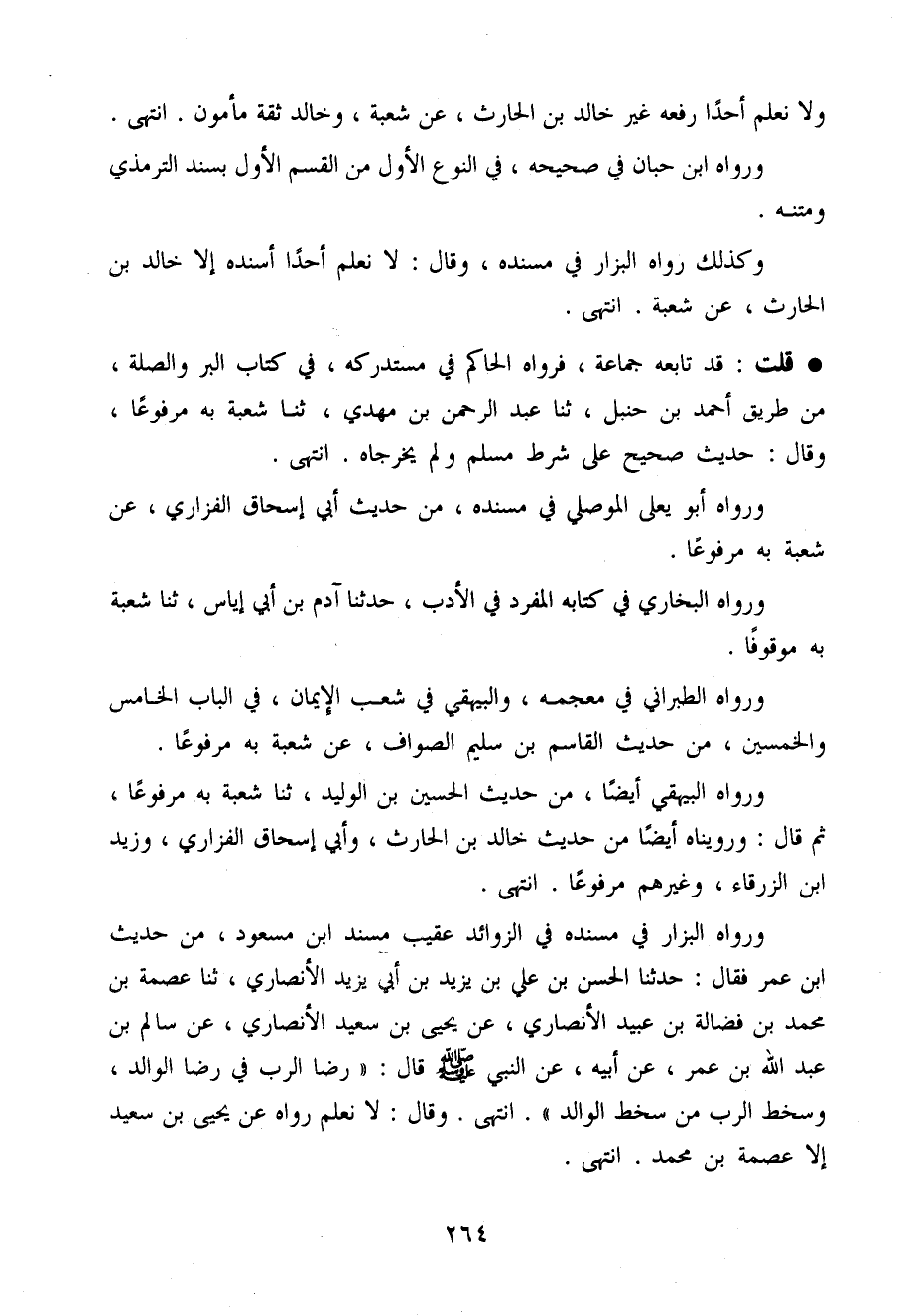 وَلَا نعلم أحدا رَفعه غير خَالِد بن الْحَارِث عَن شُعْبَة وخَالِد ثِقَة مَأْمُون