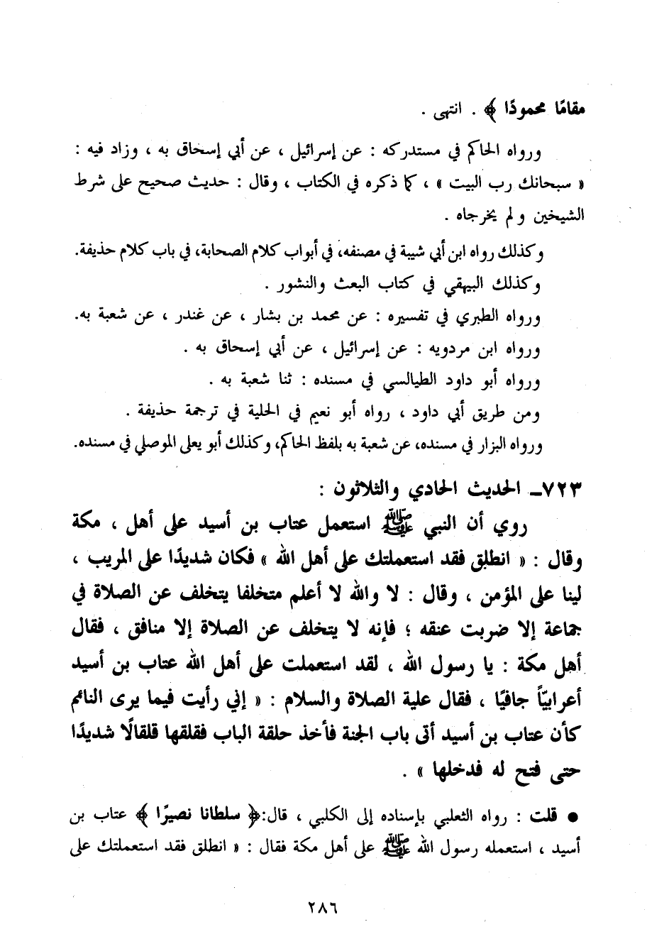 قلت رَوَاهُ الثَّعْلَبِيّ بِإِسْنَادِهِ إِلَى الْكَلْبِيّ قَالَ سُلْطَانا نَصِيرًا عتاب بن أسيد اسْتَعْملهُ رَسُول الله صَلَّى اللَّهُ عَلَيْهِ وَسَلَّم َ عَلَى أهل مَكَّة فَقَالَ (انْطلق فقد اسْتَعْمَلْتُك عَلَى