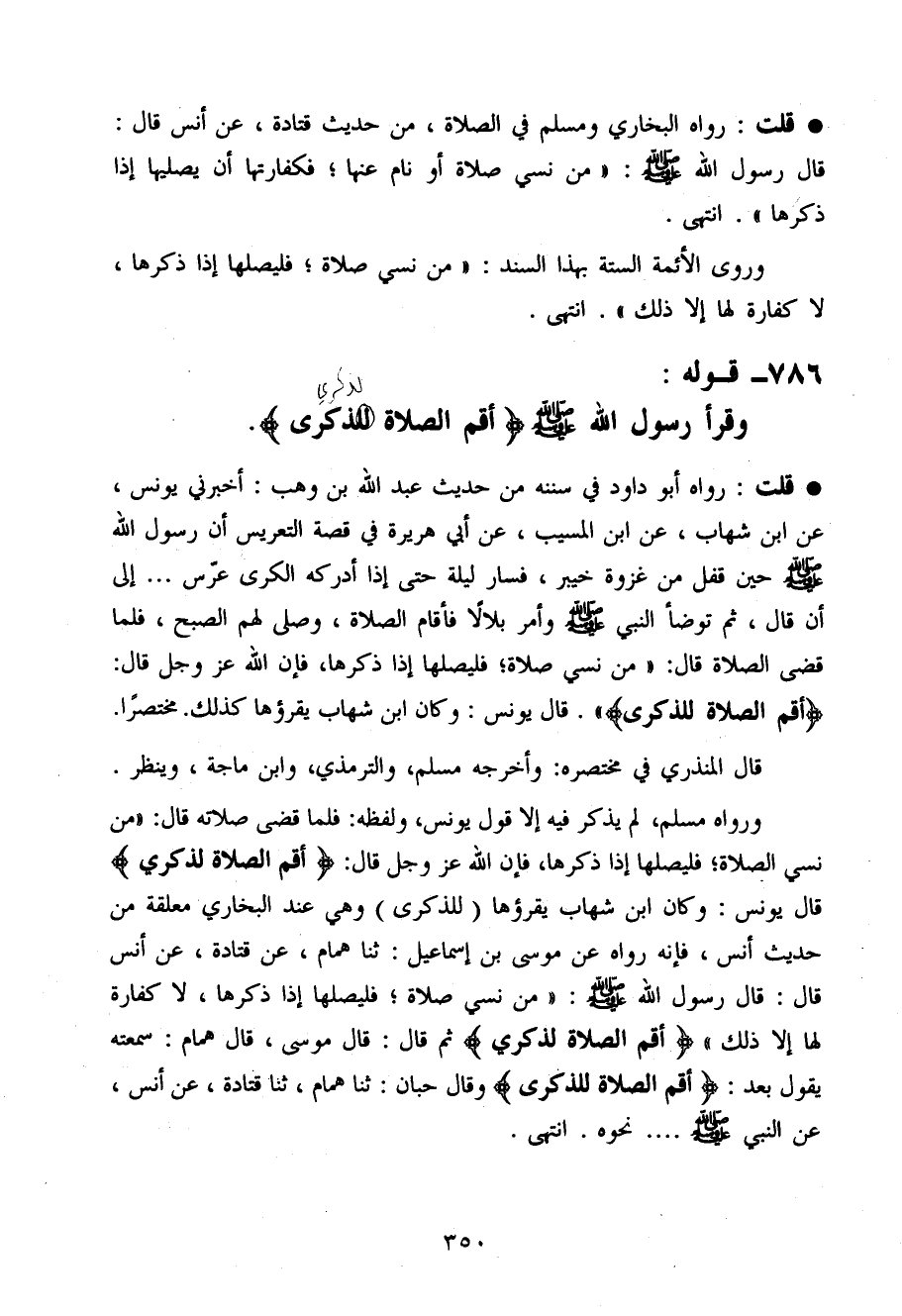 786 - قَوْله وَقَرَأَ رَسُول الله صَلَّى اللَّهُ عَلَيْهِ وَسَلَّم َ أقِم الصَّلَاة لذكرى