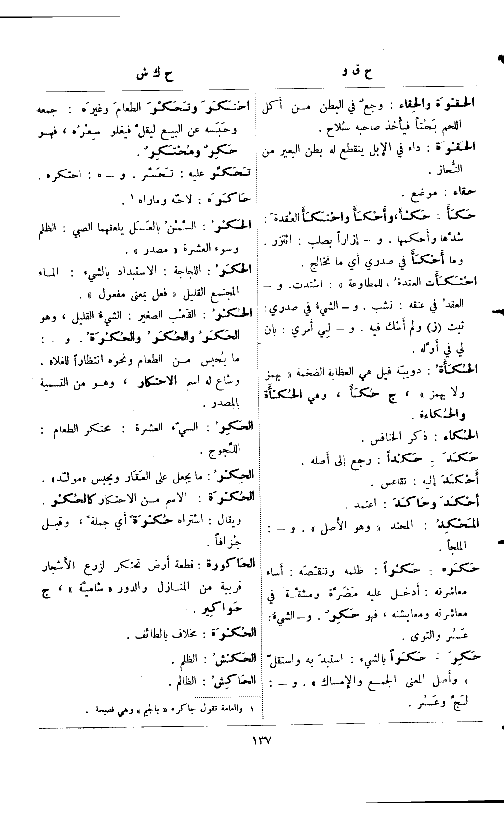 الحكر: اللجاجة: الاستبداد بالشيء: الماء المجتمع القليل "فعل بمعنى مفعول".
