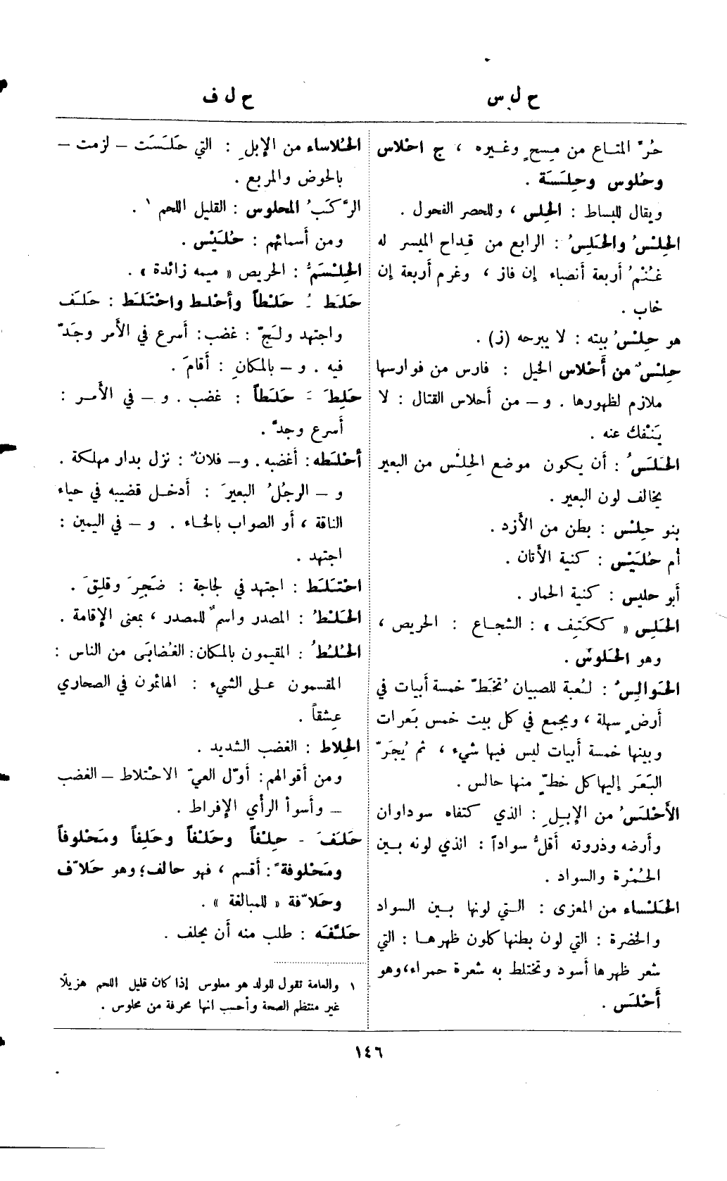 (¬1) () والعامة تقول للولد هو معلوس إذا كان قليل اللحم هزيلًا غير منتظم الصحة وأحسب إنها محرفة من محلوس.