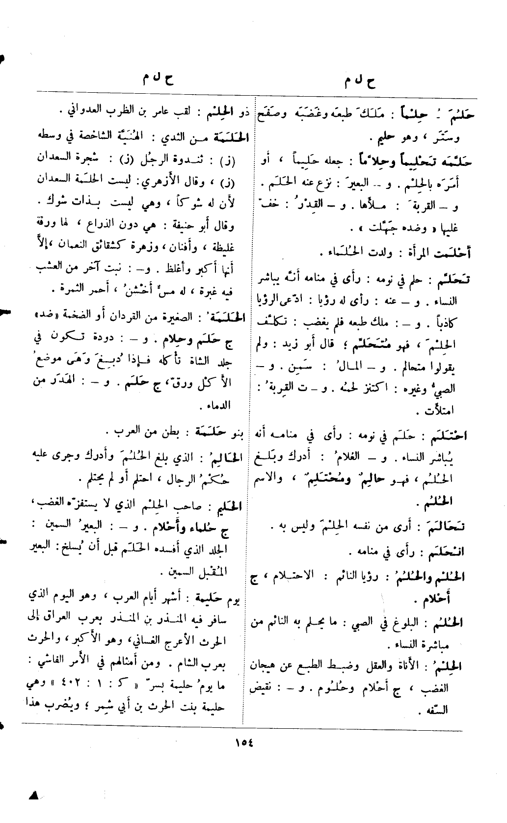 الحليم: صاحب الحلم الذي لا يستفزه الغضب، ج حلماء وأحلام. و-: البعير السمين: الجلد الذي أفسده الحلم قبل أن يسلخ: البعير المقبل السمين.
