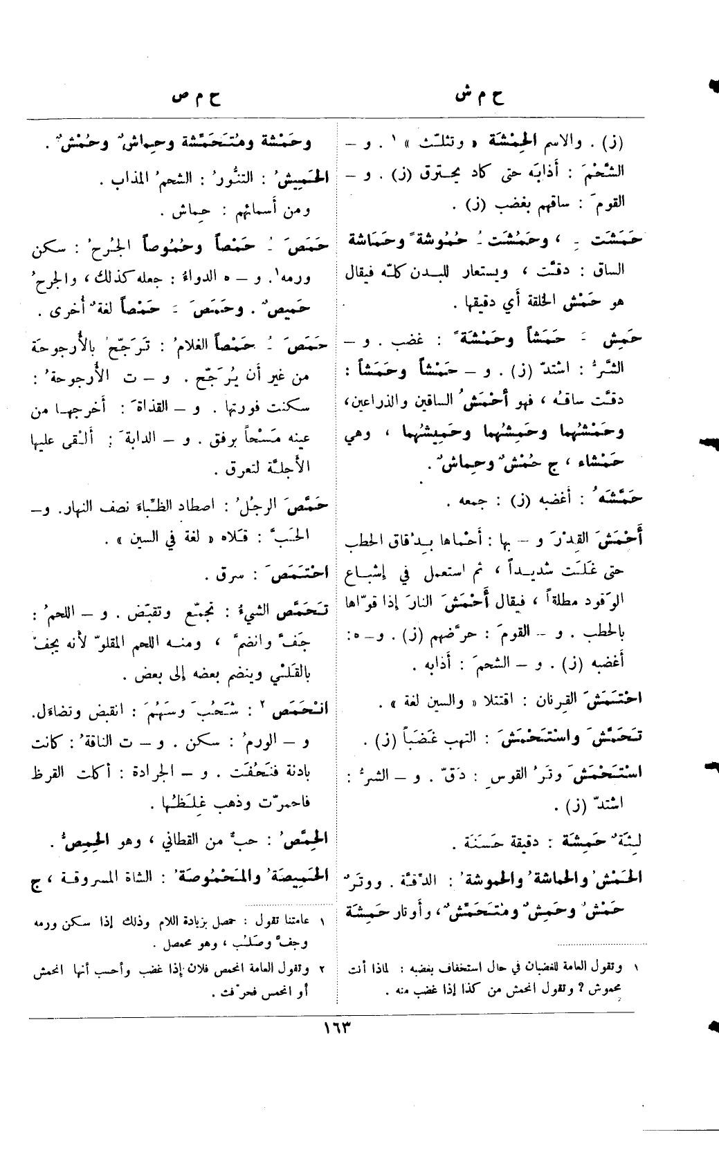 (¬3) () وتقول العامة انحمص فلان إذا غضب وأحسب أنها انحمش أو انحمس فحرفت.