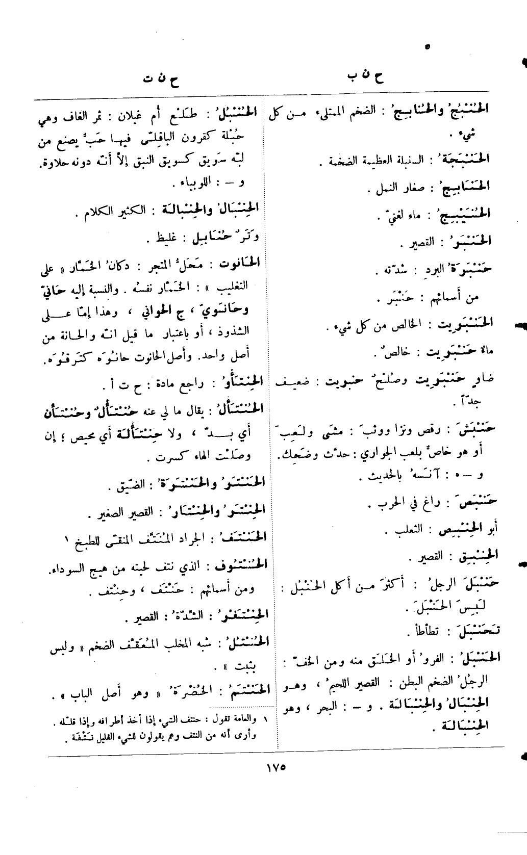 (¬1) () والعامة تقول: حنتف الشيء إذا أخذ أطرافه وإذا قلله. وأرى أنه من النتف وهم يقولون للشيء القليل نتفة.