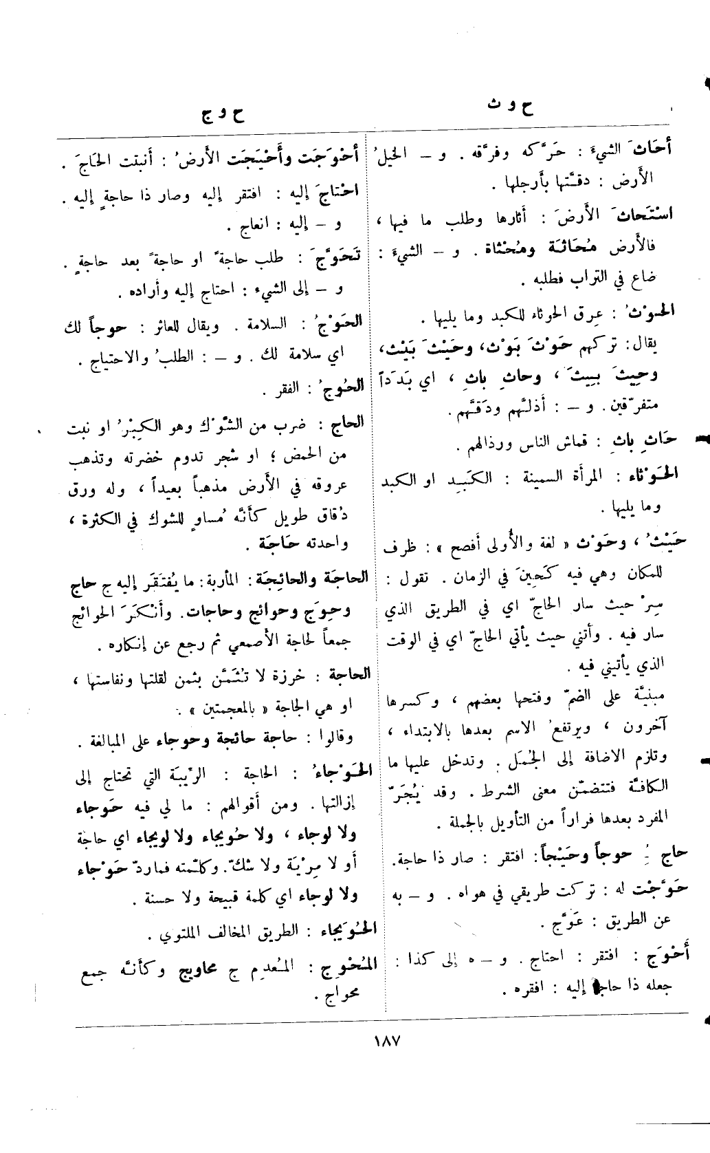 الحاجة والحائجة: المأربة: ما يفتقر إليه ج حاج وحوج وحوائد وحاجات. وأنكر الحوائج جمعًا لحاجة الأصمعي ثم رجع عن إنكاره.