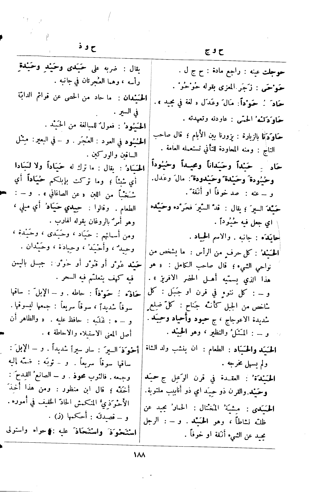 حاد- حيدًا وحيدانًا ومحيدًا وحيودًا وحيودةً وحيدةً وحيدودةً: مال وعدل. و- عنه: صد خوفًا أو أنفةً.