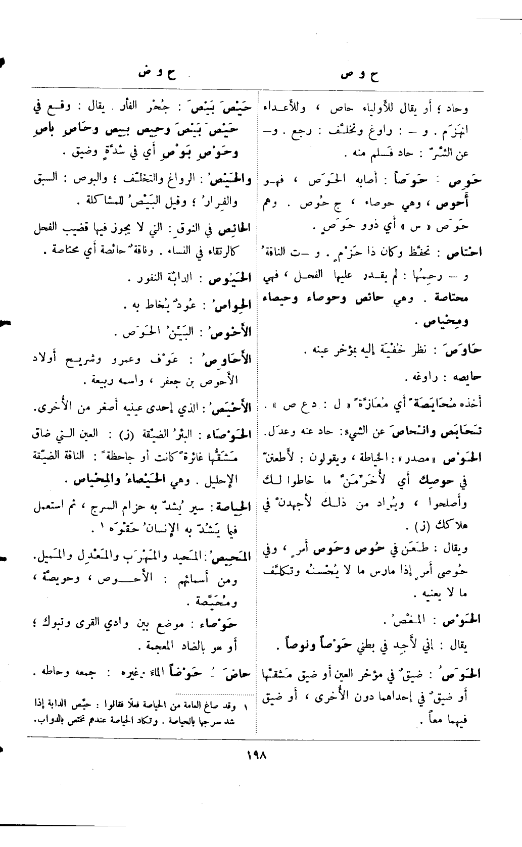 ويقال: طعن في حوص وحوص أمرٍ، وفي حوصى أمرٍ إذا مارس ما لا يحسنه وتكلف ما لا يعنيه.