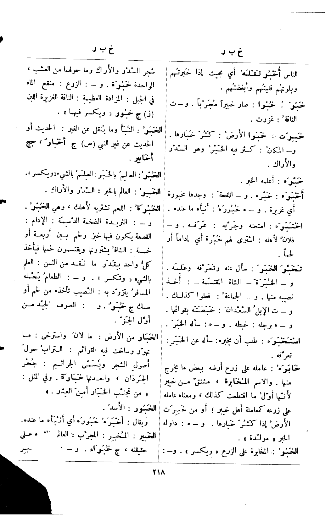 خبر- خبرا: صار خبيرًا مجربًا. و- ت الناقة: غزرت.