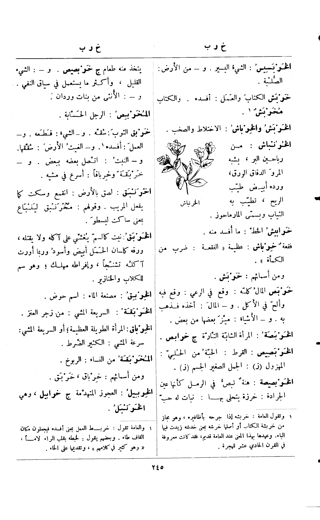 خربص المال كله: وقع في الرعي: وقع فيه وألح في الأكل. و- المال: أخذه فذهب به. و- الأشياء: ميز بعضها من بعض.