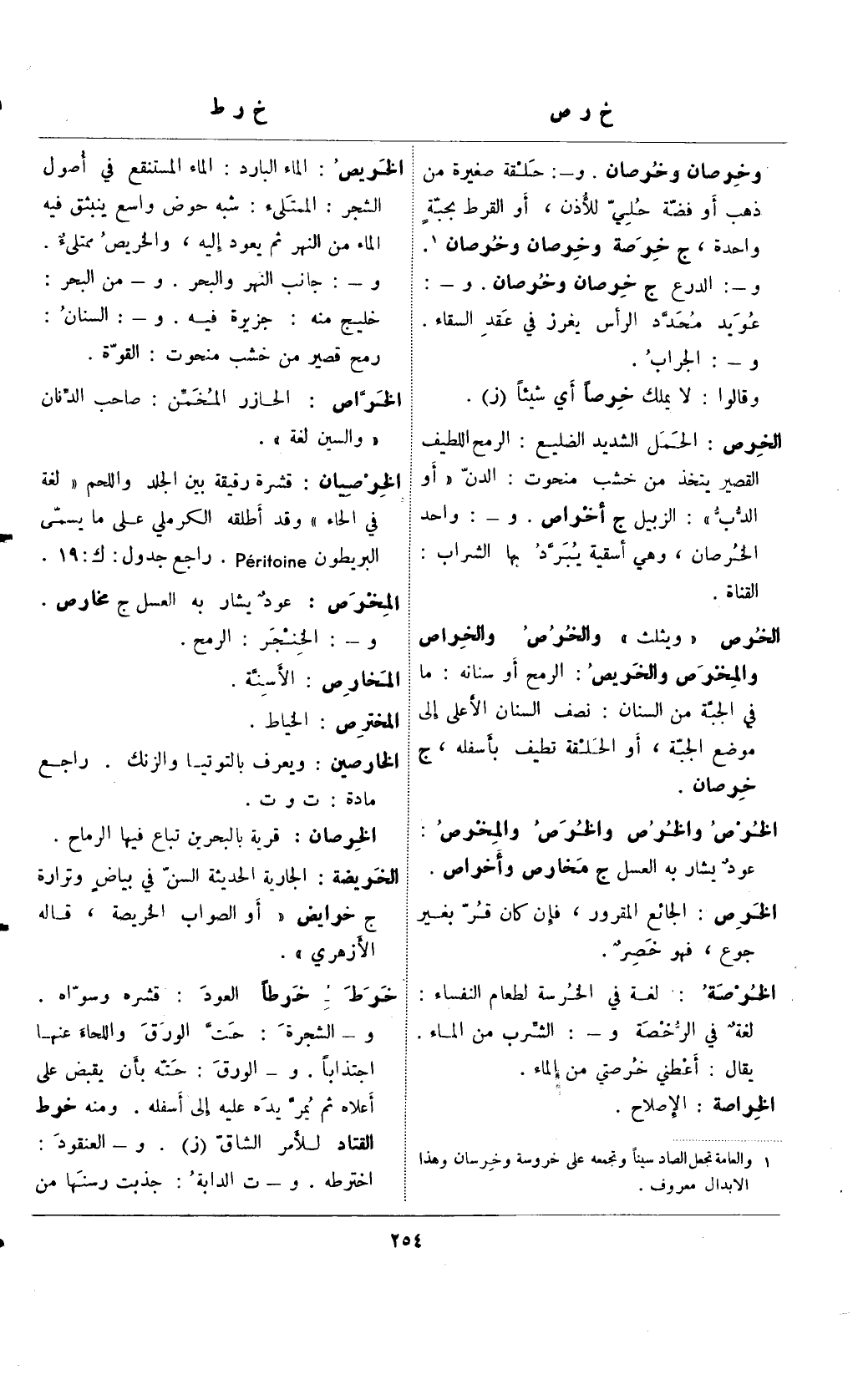 (¬1) () والعامة تجعل الصاد سينًا وتجمعه على خروسة وخرسان وهذا الابدال معروف.