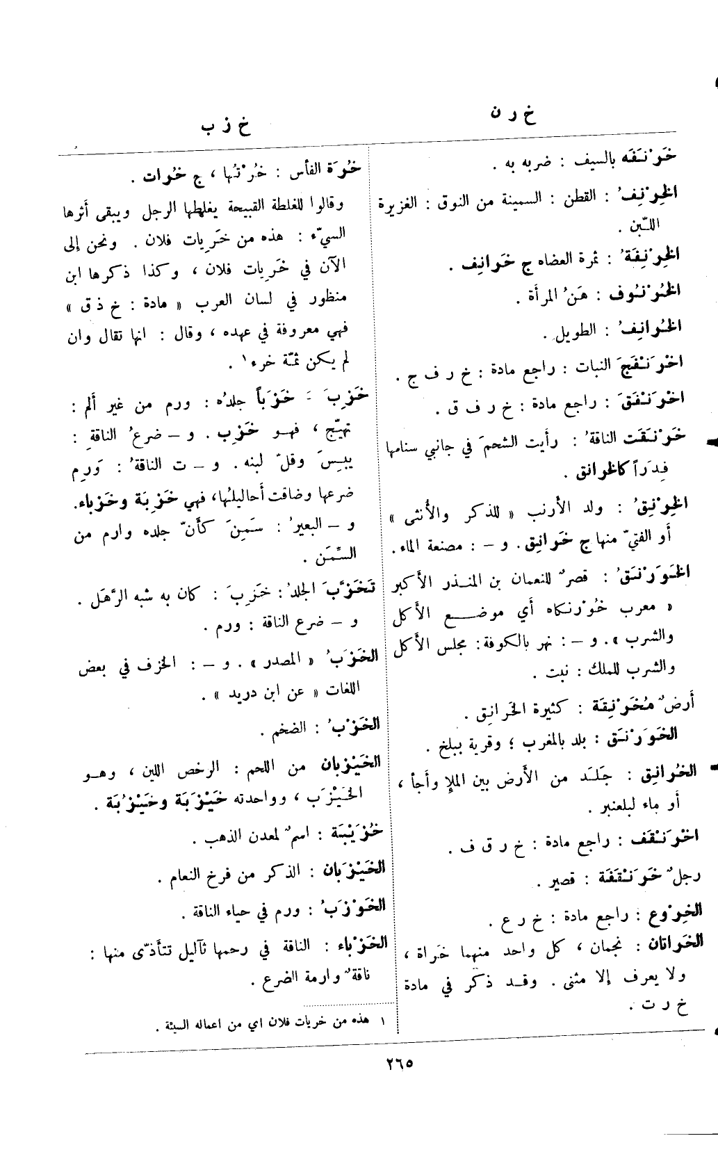 وقالوا للغلطة القبيحة يغلطها الرجل ويبقى أثرها السيء: هذه من خريات فلان. ونحن إلى الآن في خريات فلان، وكذا ذكرها ابن منظور في لسان العرب "مادة: خ ذ ق" فهي معروفة في عهده، وقال: إنها تقال وإن لم يكن ثمة خرء (¬1).