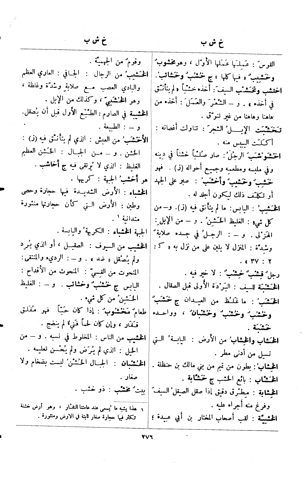 اخشوشب الرجل: صار صلبًا خشنًا في دينه وفي ملبسه ومطعمه وجميع أحواله (ز). فهو خشبٌ وخشيبٌ وأخشب: صبر على الجهد أو تكلف ذلك ليكون أجلد له.