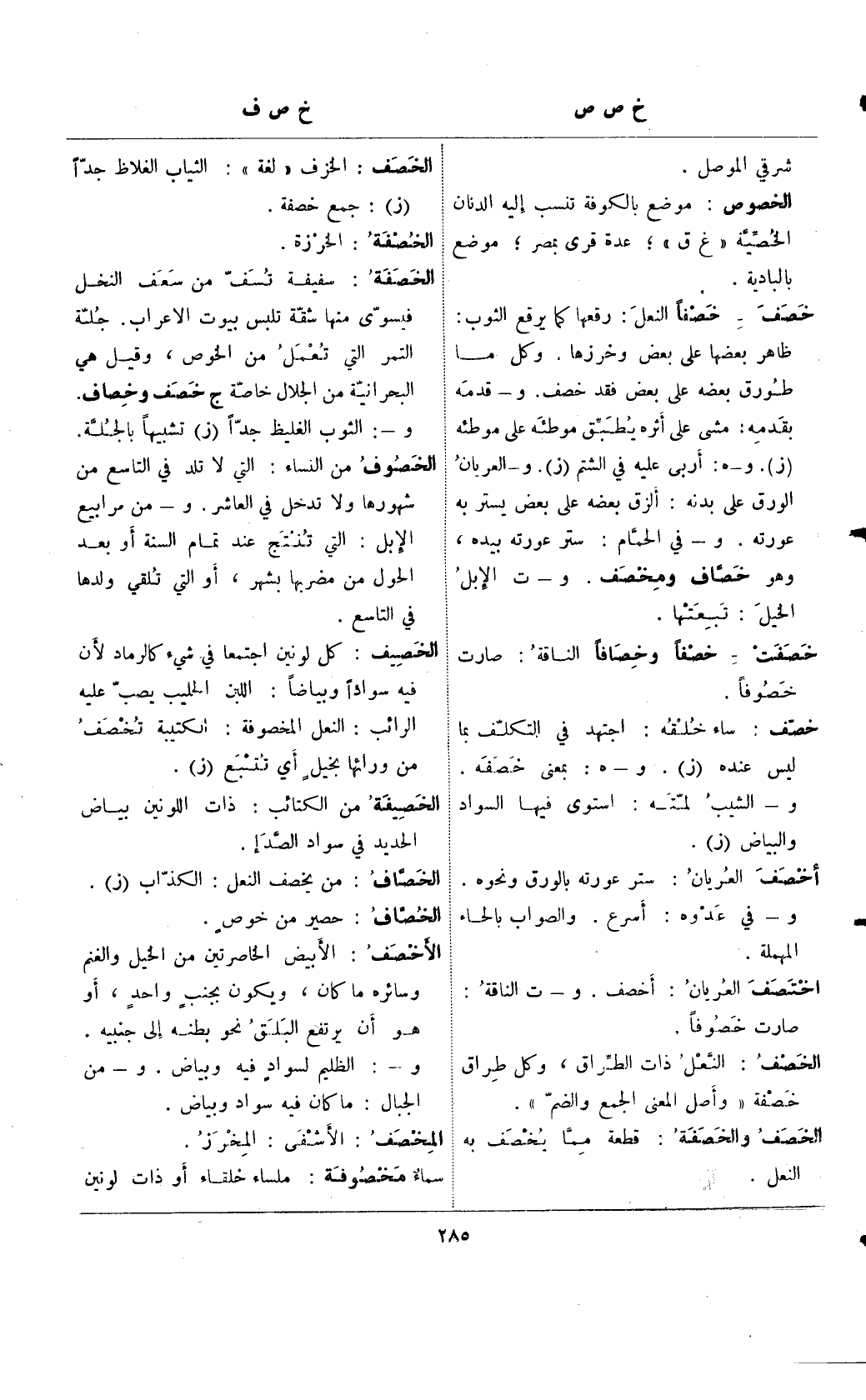 خصف: ساء خلقه: اجتهد في التكلف بما ليس عنده (ز). و- هـ: بمعنى خصفه. و- الشيب لمته: استوى فيها السواد والبياض (ز).