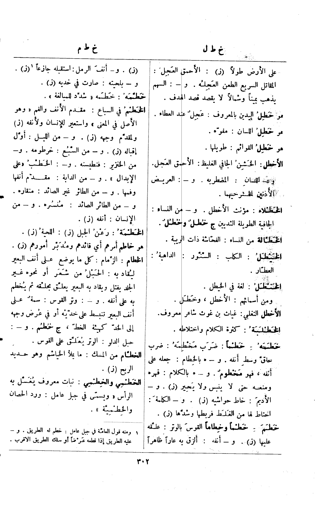 (¬1) () ومنه قول العامة في جبل عامل: خطم له الطريق. و- عليه الطريق إذا قطعه عرضًا أو سلك الطريق الاقرب.