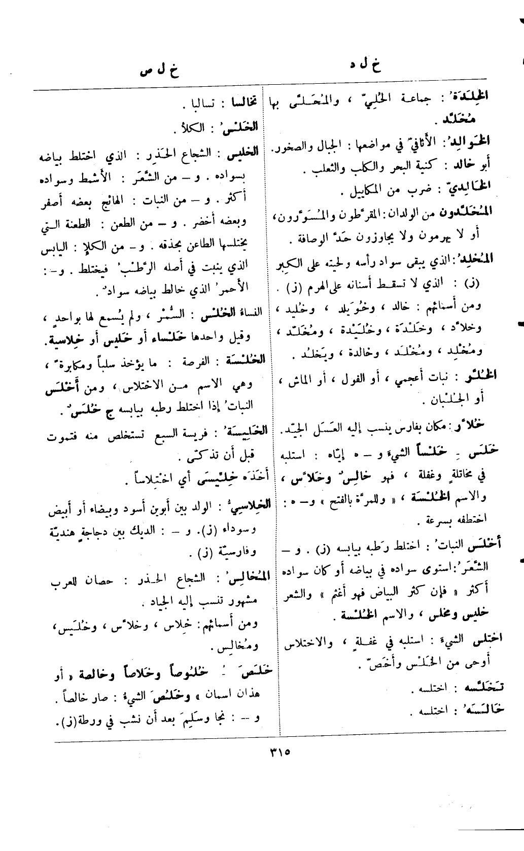 خلص- خلوصًا وخلاصًا وخالصة "أو هذان اسمان" وخلص الشيء: صار خالصًا. و-: نجا وسلم بعد أن نشب في ورطة (ز).