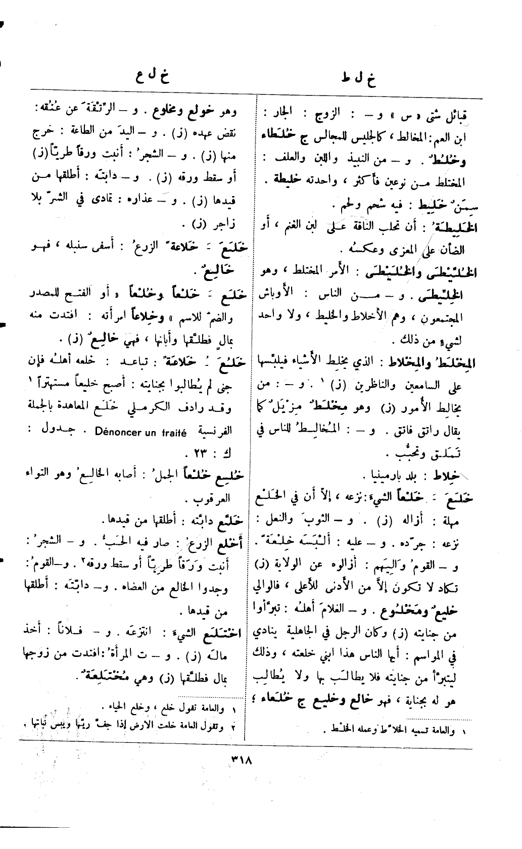 خلع- خلاعةً: تباعد: خلعه أهله فإن جنى لم يطالبوا بجنايته: أصبح خليعًا مستهترًا (¬2) وقد رادف الكرملي خلع المعاهدة بالجملة الفرنسية Dénoncer un traité. جدول: ك: 23.