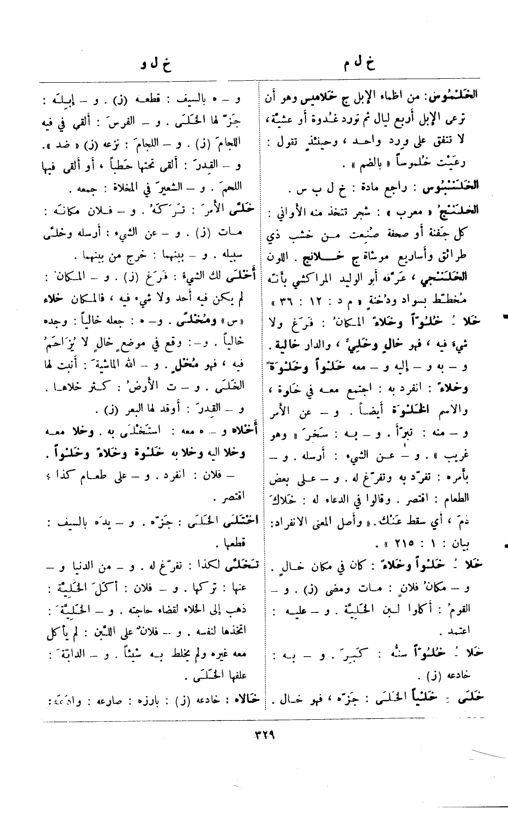 خلا- خلوًا وخلاء: كان في مكان خالٍ. و- مكان فلانٍ: مات ومضى (ز). و- القوم: أكلوا لبن الخلية. و- عليه: اعتمد.