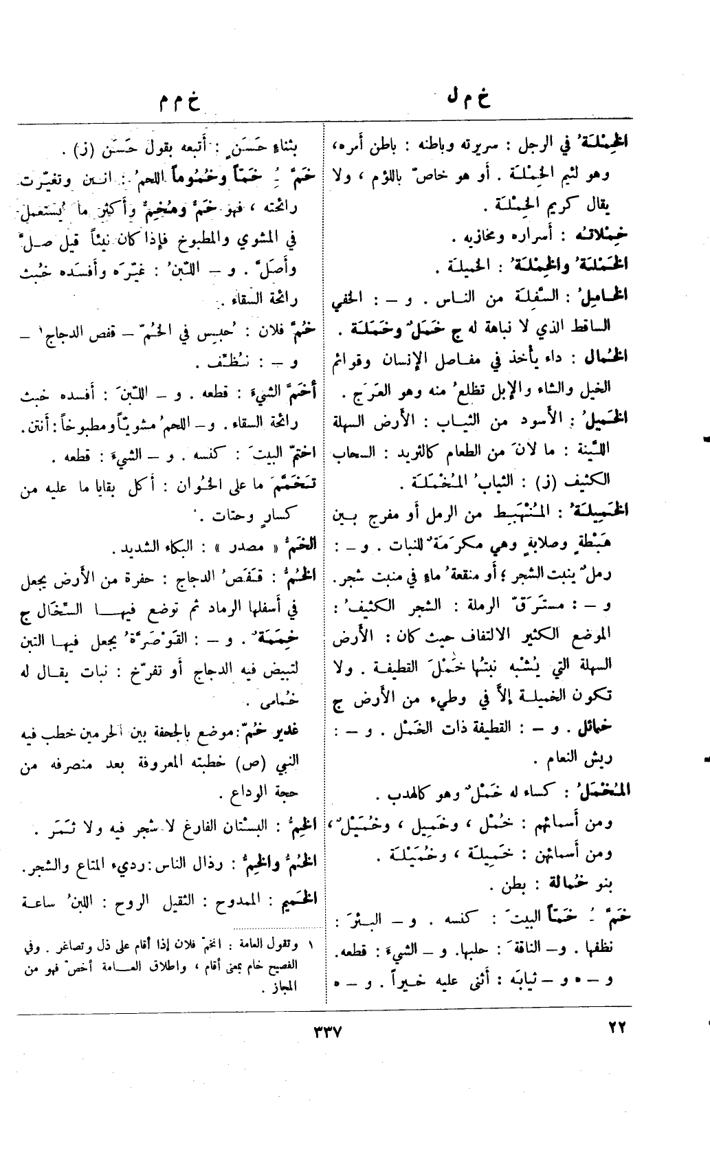 (¬1) () وتقول العامة: انخم فلان إذا أقام على ذل وتصاغر. وفي الفصيح خام بمعنى أقام، واطلاق العامة أخص فهو من المجاز.