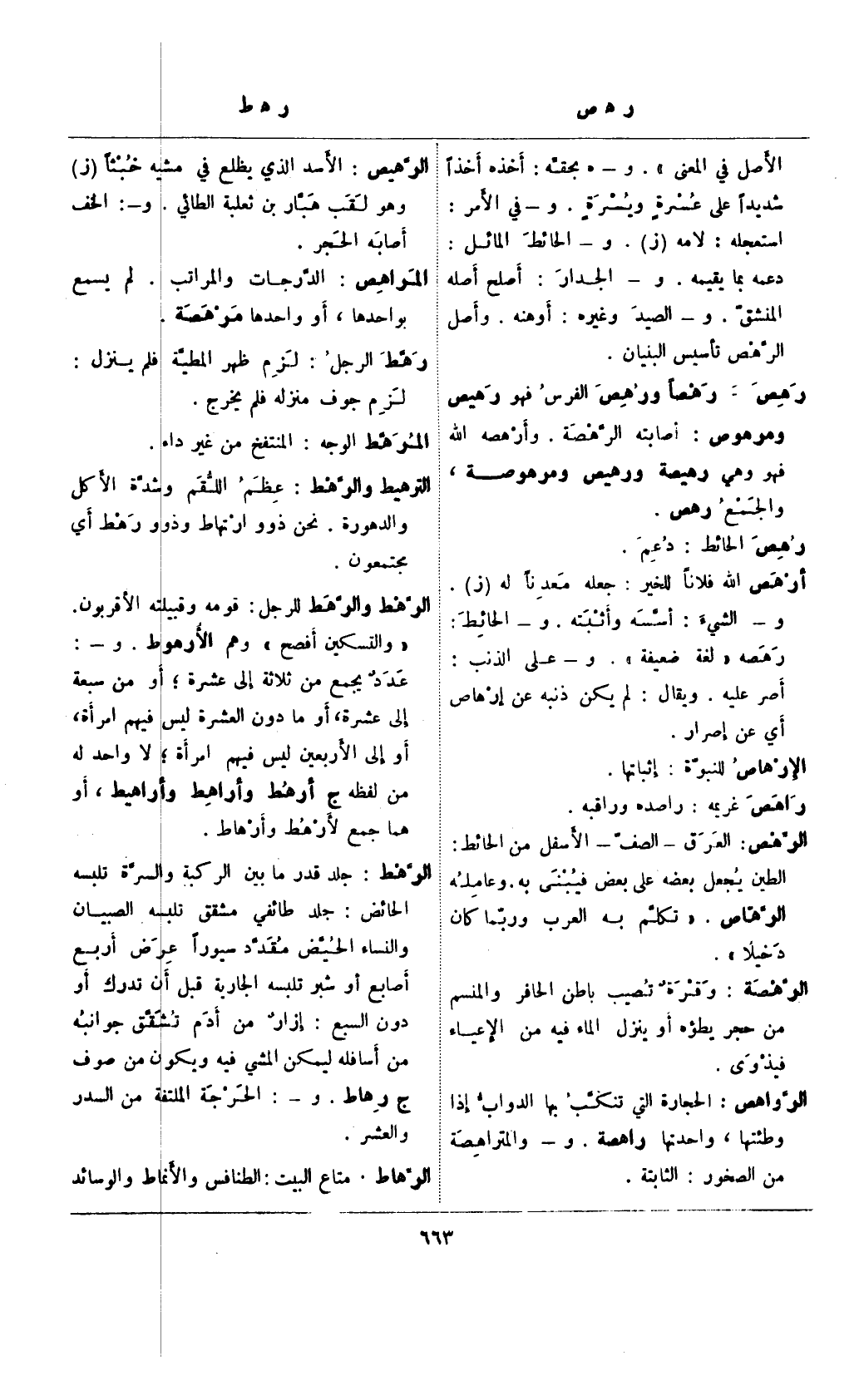 الرهط والرهط للرجل: قومه وقبيلته الأقربون. "والتسكين أفصح" وهو الأرهوةط. و-: عدد يجمع من ثلاثة إلى عشرة؛ أو من سبعة إلى عشرة، أو ما دون العشرة ليس فيهم امرأة، أو إلى الأربعين ليس فيهم امرأة؛ لا واحد له من لفظه ج أرهط وأراهط وأراهيط، أو هما جمع لأرهط وأرهاط.