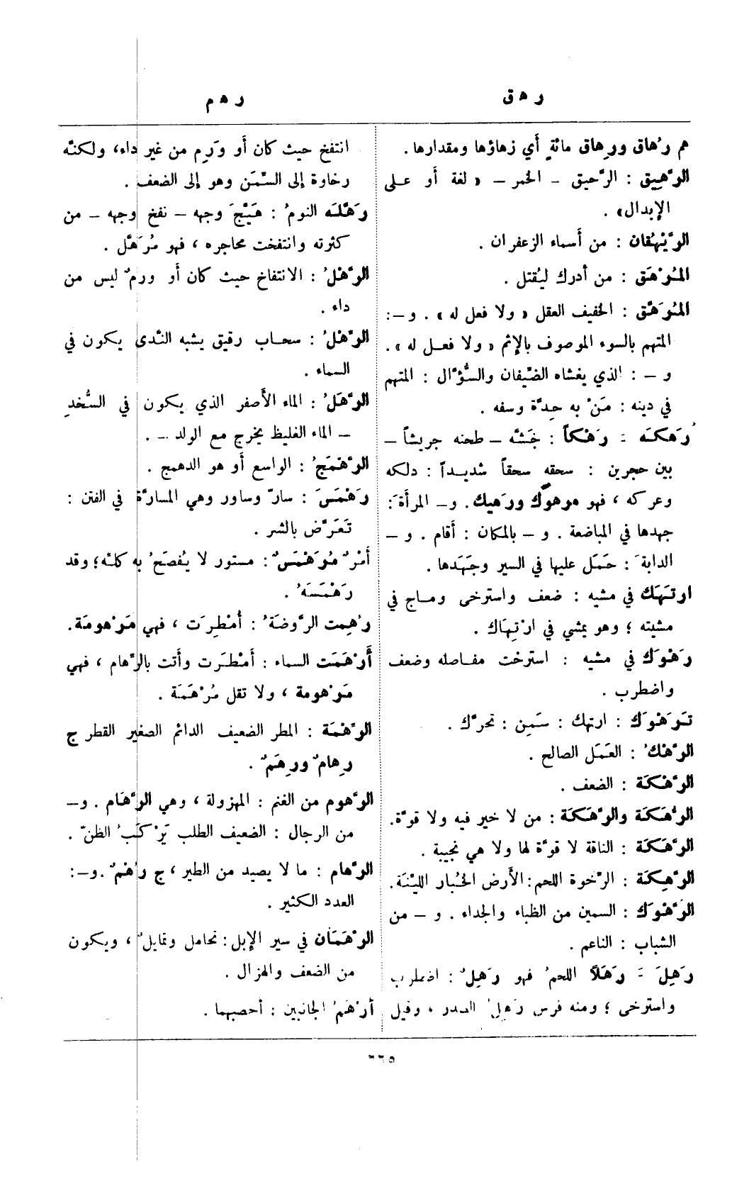 الرهوم من الغنم: المهزولة، وهي الرهام. و- من الرجال: الضعيف الطلب يركب الظن.