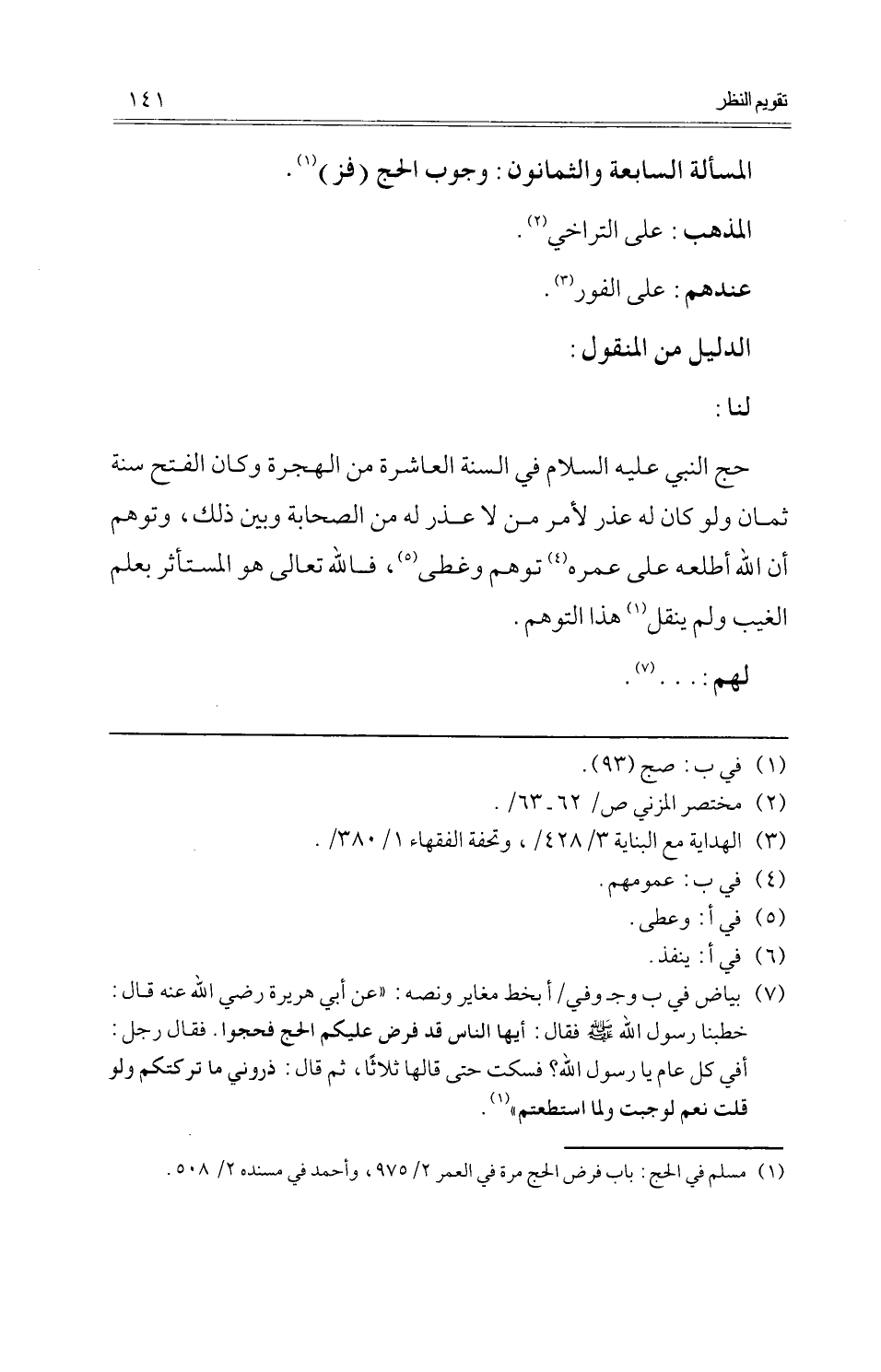 (الْمَسْأَلَة السَّابِعَة وَالثَّمَانُونَ: وجوب الْحَج (فز)) .