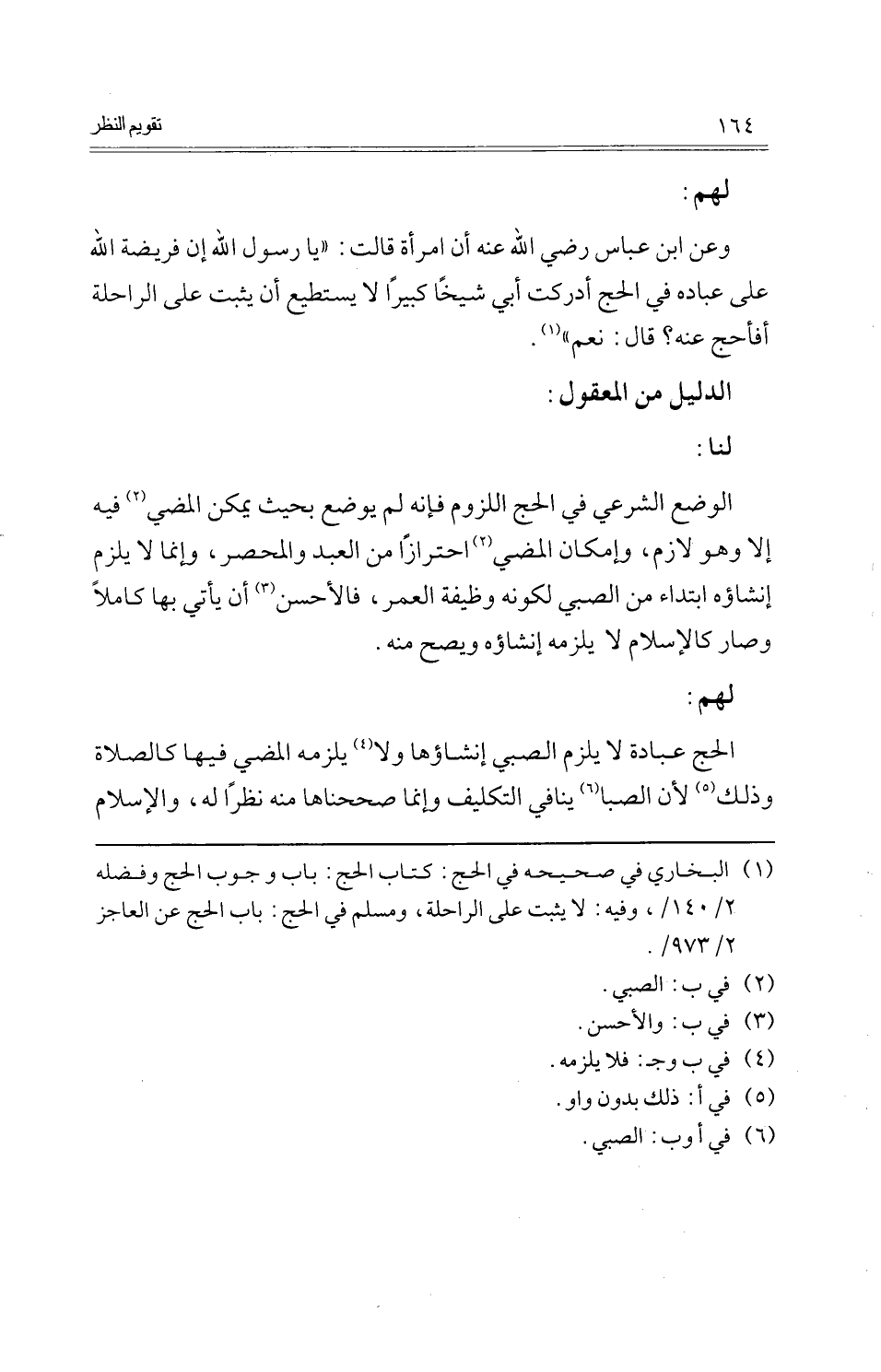 الْحَج عبَادَة لَا يلْزم الصَّبِي إنشاؤها وَلَا يلْزمه الْمُضِيّ فِيهَا كَالصَّلَاةِ وَذَلِكَ لِأَن الصِّبَا يُنَافِي التَّكْلِيف وَإِنَّمَا صححناها مِنْهُ نظرا لَهُ، وَالْإِسْلَام