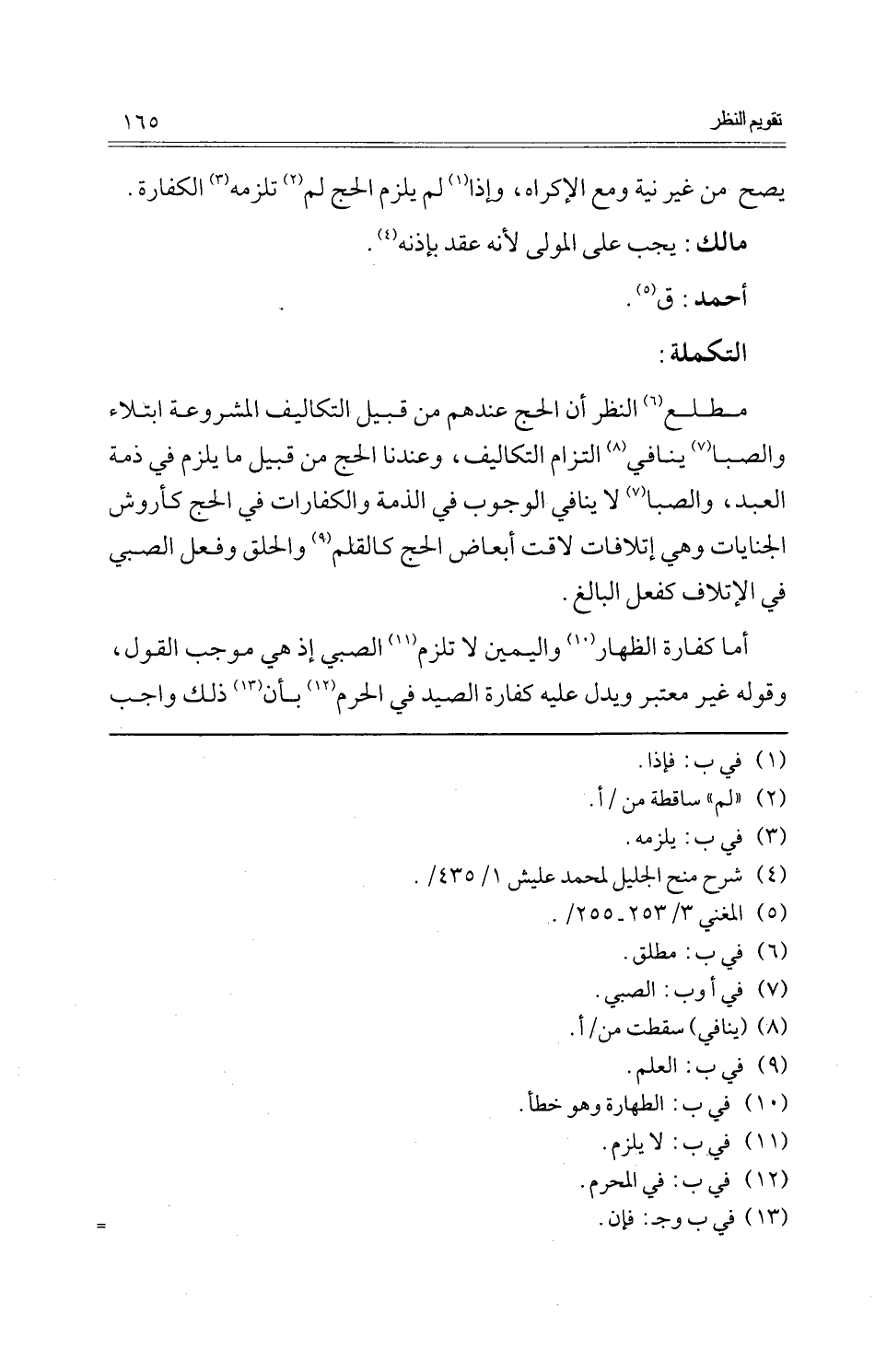 مطلع النّظر أَن الْحَج عِنْدهم من قبيل التكاليف الْمَشْرُوعَة ابتلاء وَالصبَا يُنَافِي الْتِزَام التكاليف، وَعِنْدنَا الْحَج من قبيل مَا يلْزم فِي ذمَّة العَبْد، وَالصبَا لَا يُنَافِي الْوُجُوب فِي الذِّمَّة وَالْكَفَّارَات فِي الْحَج كأروش الْجِنَايَات وَهِي إتلافات لاقت أبعاض الْحَج كالقلم وَالْحلق وَفعل الصَّبِي فِي الْإِتْلَاف كَفعل الْبَالِغ.