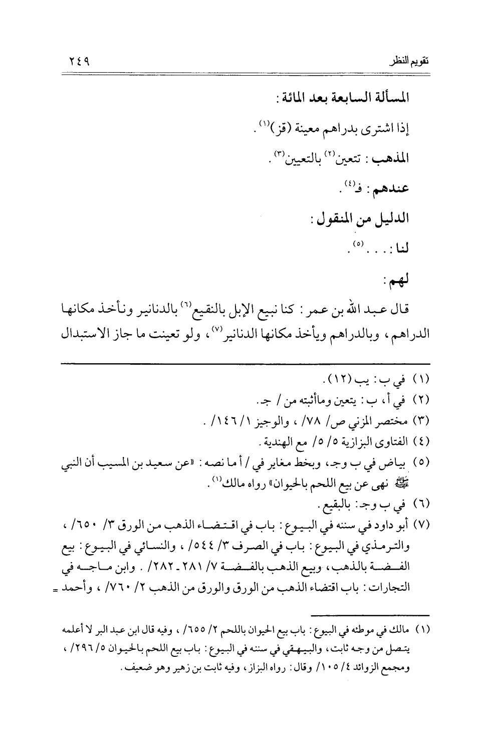 (الْمَسْأَلَة السَّابِعَة بعد الْمِائَة: