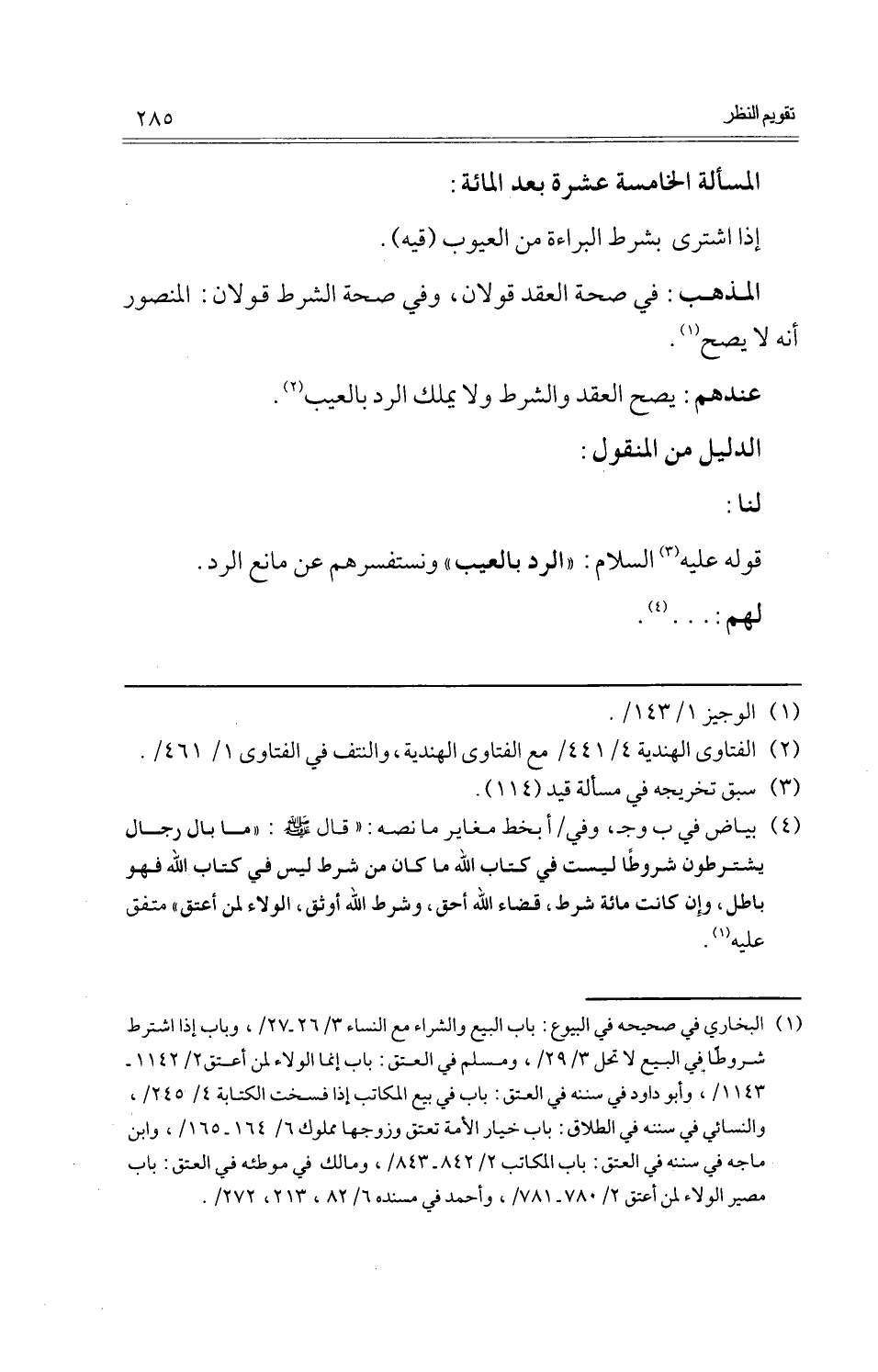 (الْمَسْأَلَة الْخَامِسَة عشرَة بعد الْمِائَة: