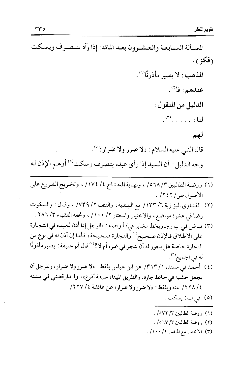 (الْمَسْأَلَة السَّابِعَة وَالْعشْرُونَ بعد الْمِائَة: إِذا رَآهُ يتَصَرَّف ويسكت (قكز)) .