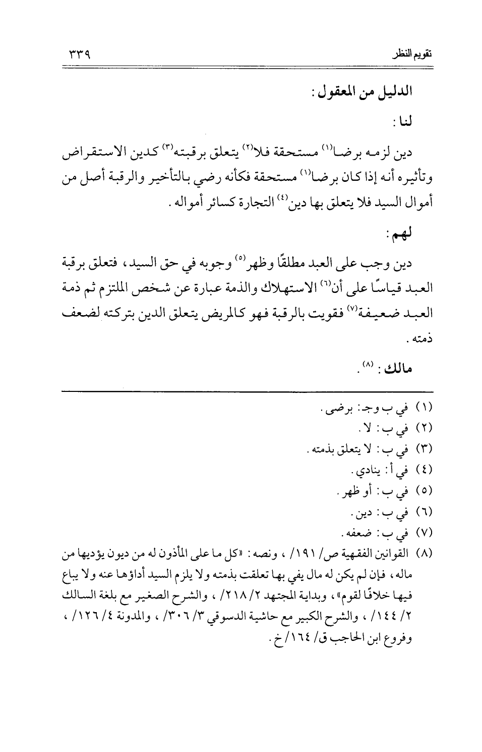 كتاب تقويم النظر في مسائل خلافية ذائعة (اسم الجزء: 2)