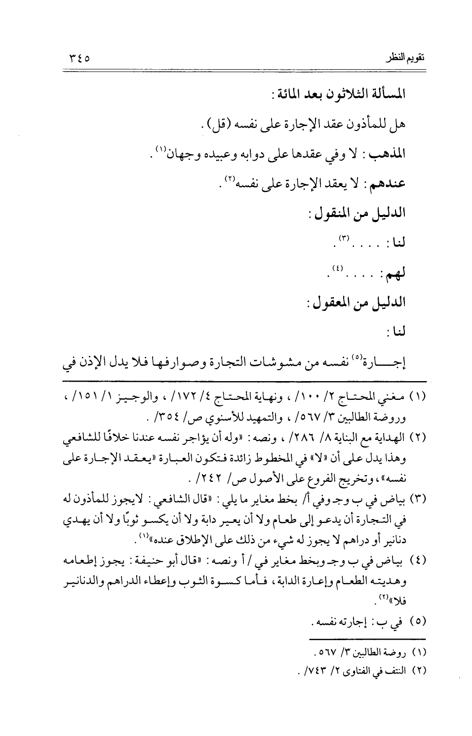 (الْمَسْأَلَة الثَّلَاثُونَ بعد الْمِائَة: