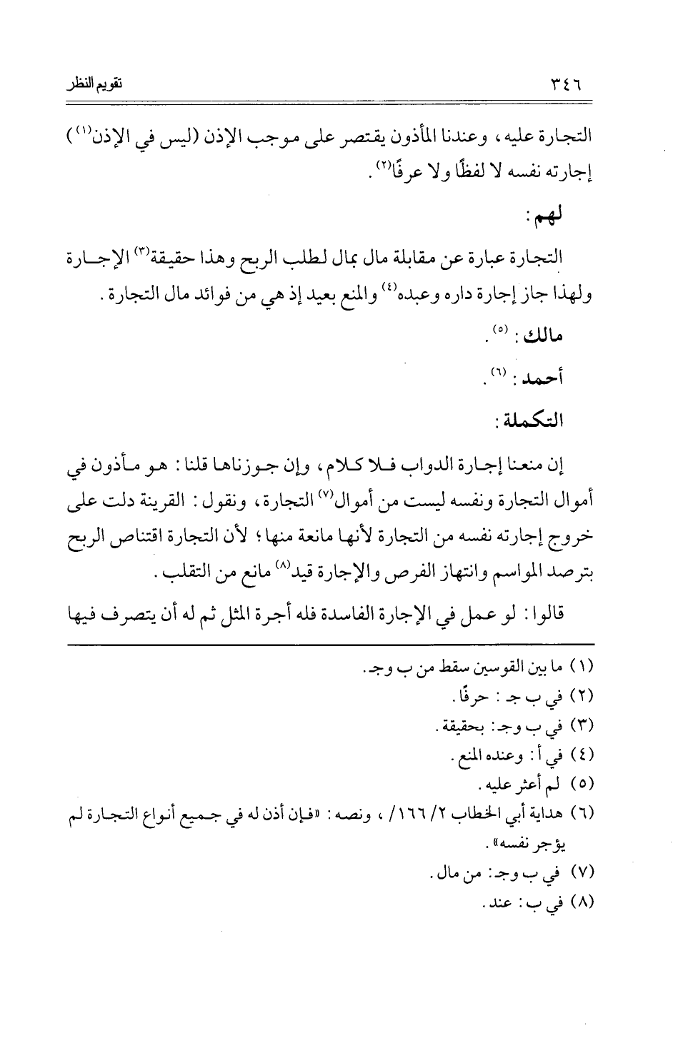 التِّجَارَة عبارَة عَن مُقَابلَة مَال بِمَال لطلب الرِّبْح وَهَذَا حَقِيقَة الْإِجَارَة وَلِهَذَا جَازَ إِجَارَة دَاره وَعَبده وَالْمَنْع بعيد إِذْ هِيَ من فَوَائِد مَال التِّجَارَة.