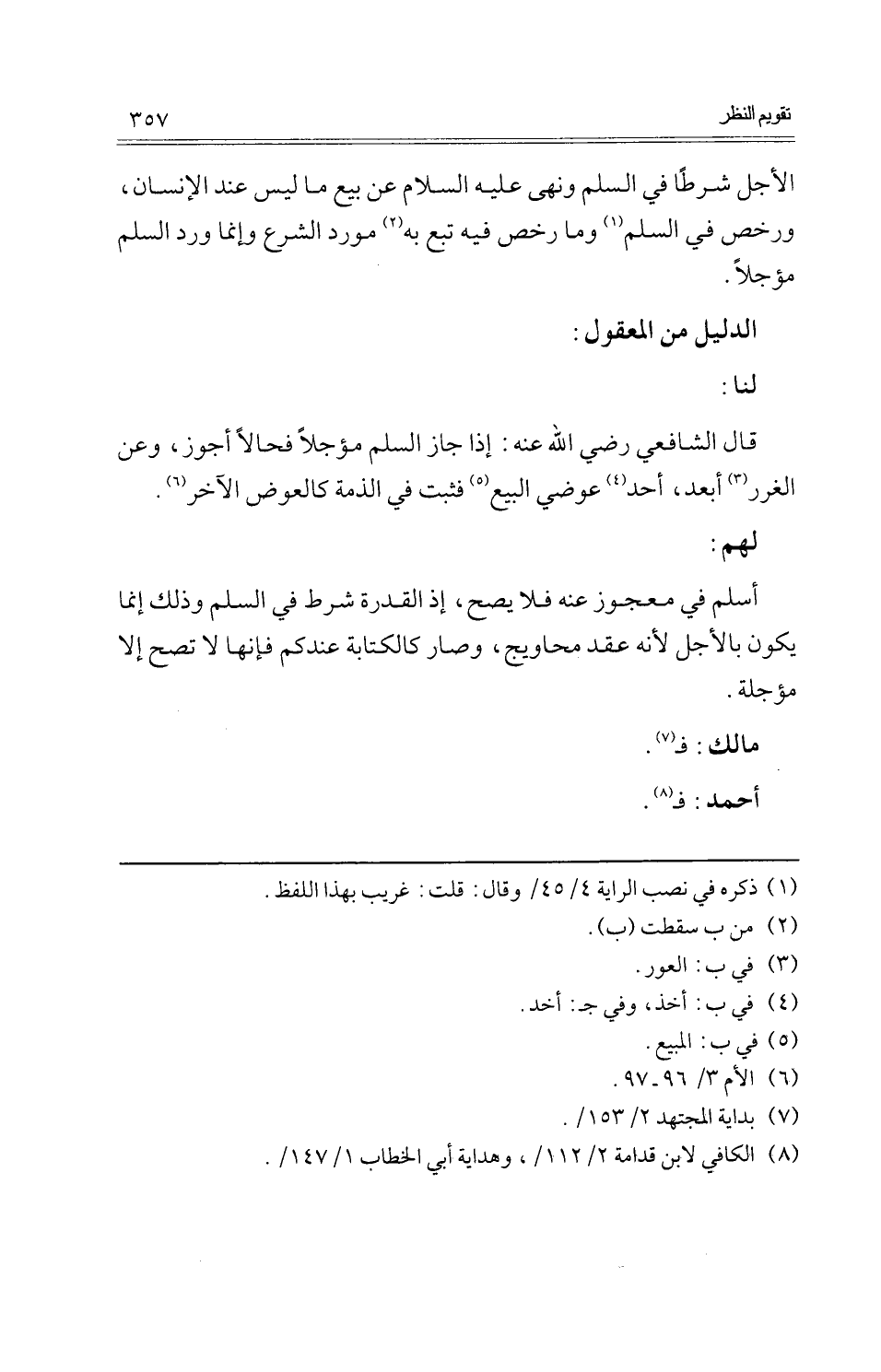 الْأَجَل شرطا فِي السّلم وَنهى عَلَيْهِ السَّلَام عَن بيع مَا لَيْسَ عِنْد الْإِنْسَان، وَرخّص فِي السّلم وَمَا رخص فِيهِ تبع بِهِ مورد الشَّرْع وَإِنَّمَا ورد السّلم مُؤَجّلا.