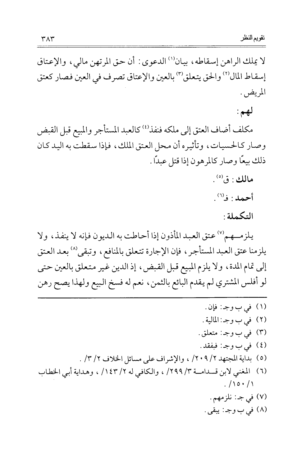 كتاب تقويم النظر في مسائل خلافية ذائعة (اسم الجزء: 2)
