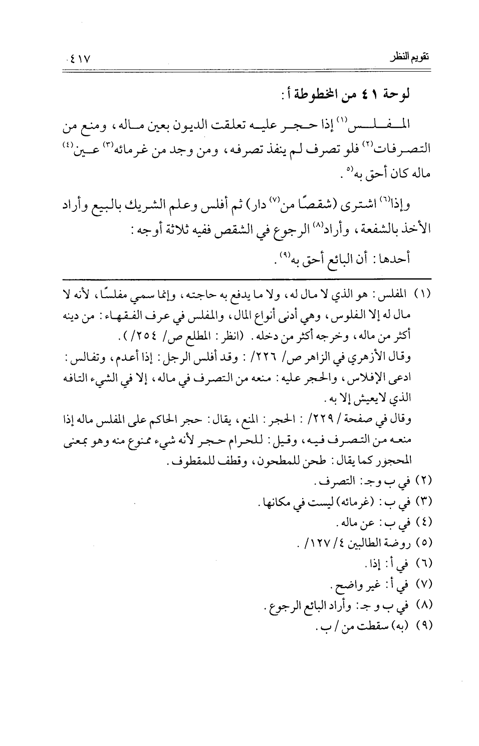 وَإِذا اشْترى (شِقْصا من دَار) ثمَّ أفلس وَعلم الشَّرِيك بِالْبيعِ وَأَرَادَ الْأَخْذ بِالشُّفْعَة، وَأَرَادَ الرُّجُوع فِي الشّقص فَفِيهِ ثَلَاثَة أوجه: