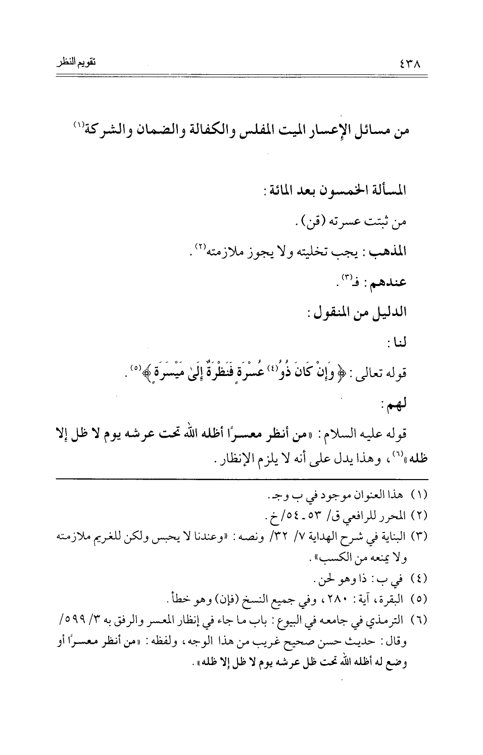 (من مسَائِل الْإِعْسَار الْمَيِّت الْمُفلس وَالْكَفَالَة وَالضَّمان وَالشَّرِكَة)