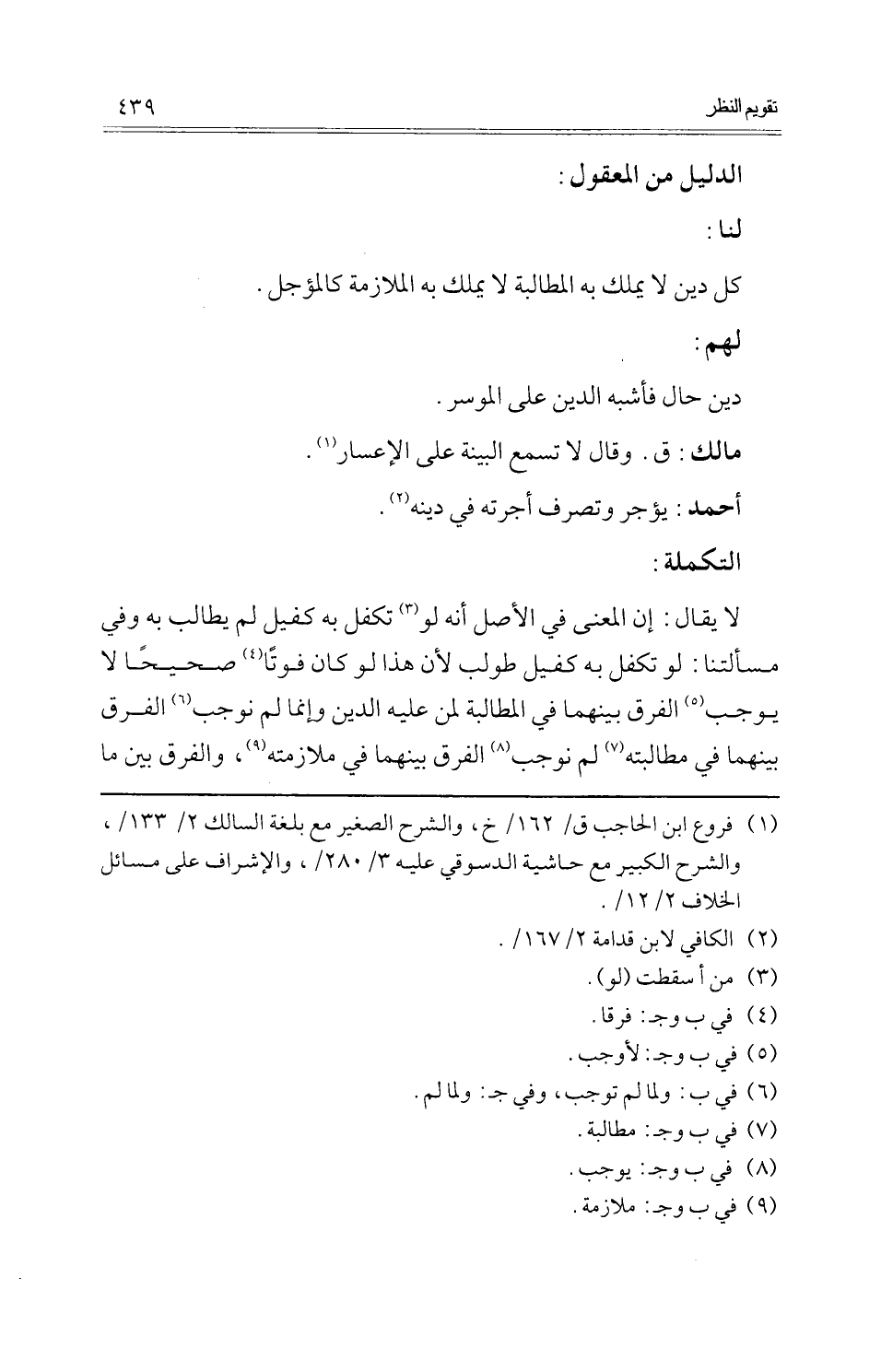 لَا يُقَال: إِن الْمَعْنى فِي الأَصْل أَنه لَو تكفل بِهِ كَفِيل لم يُطَالب بِهِ وَفِي مَسْأَلَتنَا: لَو تكفل بِهِ كَفِيل طُولِبَ لِأَن هَذَا لَو كَانَ فوتا صَحِيحا لَا يُوجب الْفرق بَينهمَا فِي الْمُطَالبَة لمن عَلَيْهِ الدّين وَإِنَّمَا لم نوجب الْفرق بَينهمَا فِي مُطَالبَته لم نوجب الْفرق بَينهمَا فِي ملازمته، وَالْفرق بَين مَا