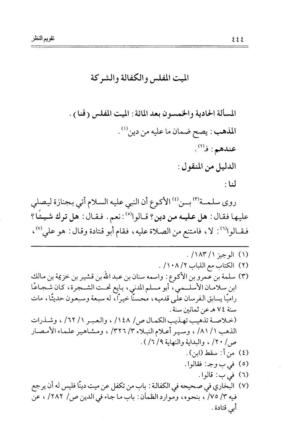 (الْمَسْأَلَة الْحَادِيَة وَالْخَمْسُونَ بعد الْمِائَة: الْمَيِّت الْمُفلس (قِنَا)) .