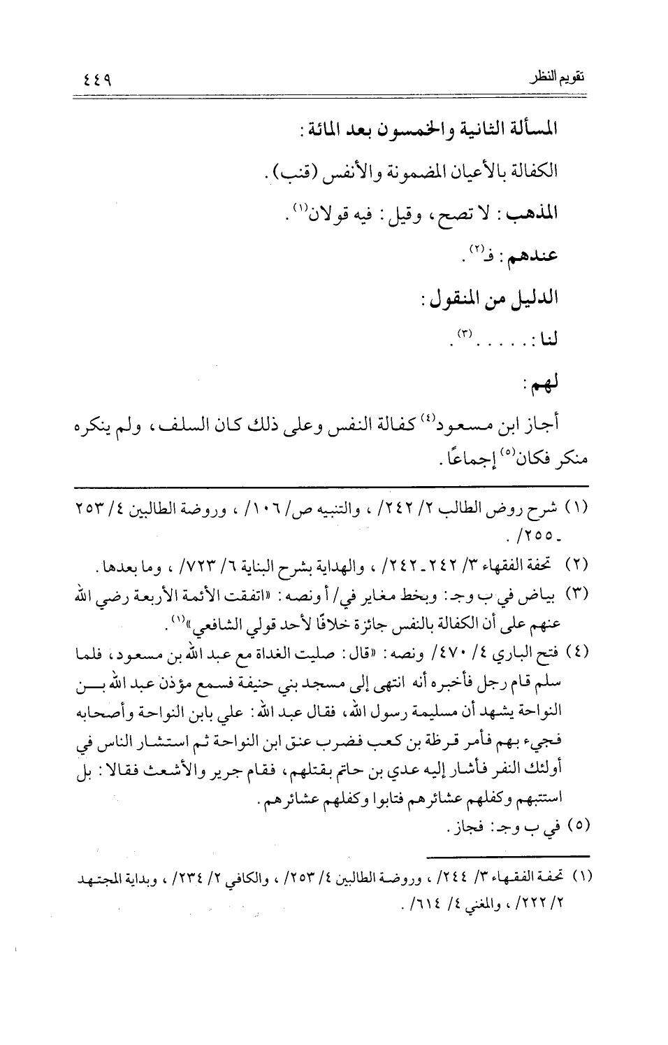 (الْمَسْأَلَة الثَّانِيَة وَالْخَمْسُونَ بعد الْمِائَة: