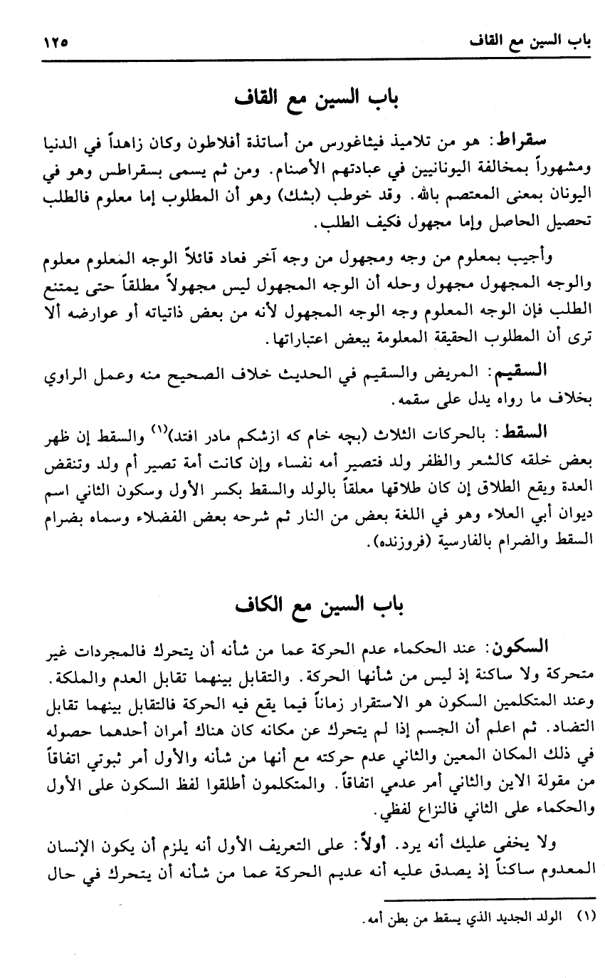 سقراط: هُوَ من تلاميذ فيثاغورس من أساتذة أفلاطون وَكَانَ زاهدا فِي الدُّنْيَا ومشهورا بمخالفة اليونانيين فِي عِبَادَتهم الْأَصْنَام. وَمن ثمَّ يُسمى بسقراطس وَهُوَ فِي اليونان بِمَعْنى المعتصم بِاللَّه. وَقد خُوطِبَ (بشك) وَهُوَ أَن الْمَطْلُوب إِمَّا مَعْلُوم فالطلب تَحْصِيل الْحَاصِل وَإِمَّا مَجْهُول فَكيف الطّلب.