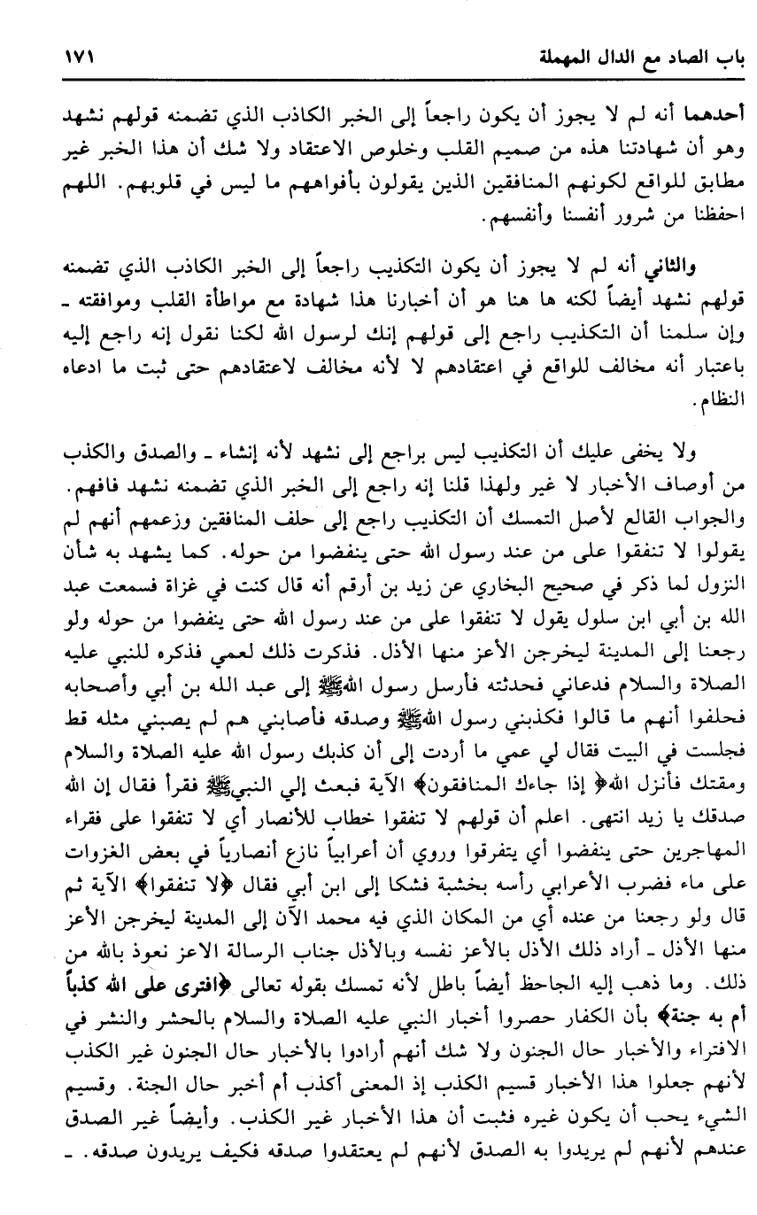 وَالثَّانِي أَنه لم لَا يجوز أَن يكون التَّكْذِيب رَاجعا إِلَى الْخَبَر الْكَاذِب الَّذِي تضمنه قَوْلهم نشْهد أَيْضا لكنه هَا هُنَا هُوَ أَن أخبارنا هَذَا شَهَادَة مَعَ مواطأة الْقلب وموافقته - وَإِن سلمنَا أَن التَّكْذِيب رَاجع إِلَى قَوْلهم إِنَّك لرَسُول الله لَكنا نقُول إِنَّه رَاجع إِلَيْهِ بِاعْتِبَار أَنه مُخَالف للْوَاقِع فِي اعْتِقَادهم لَا لِأَنَّهُ مُخَالف لاعتقادهم حَتَّى ثَبت مَا ادَّعَاهُ النظام.