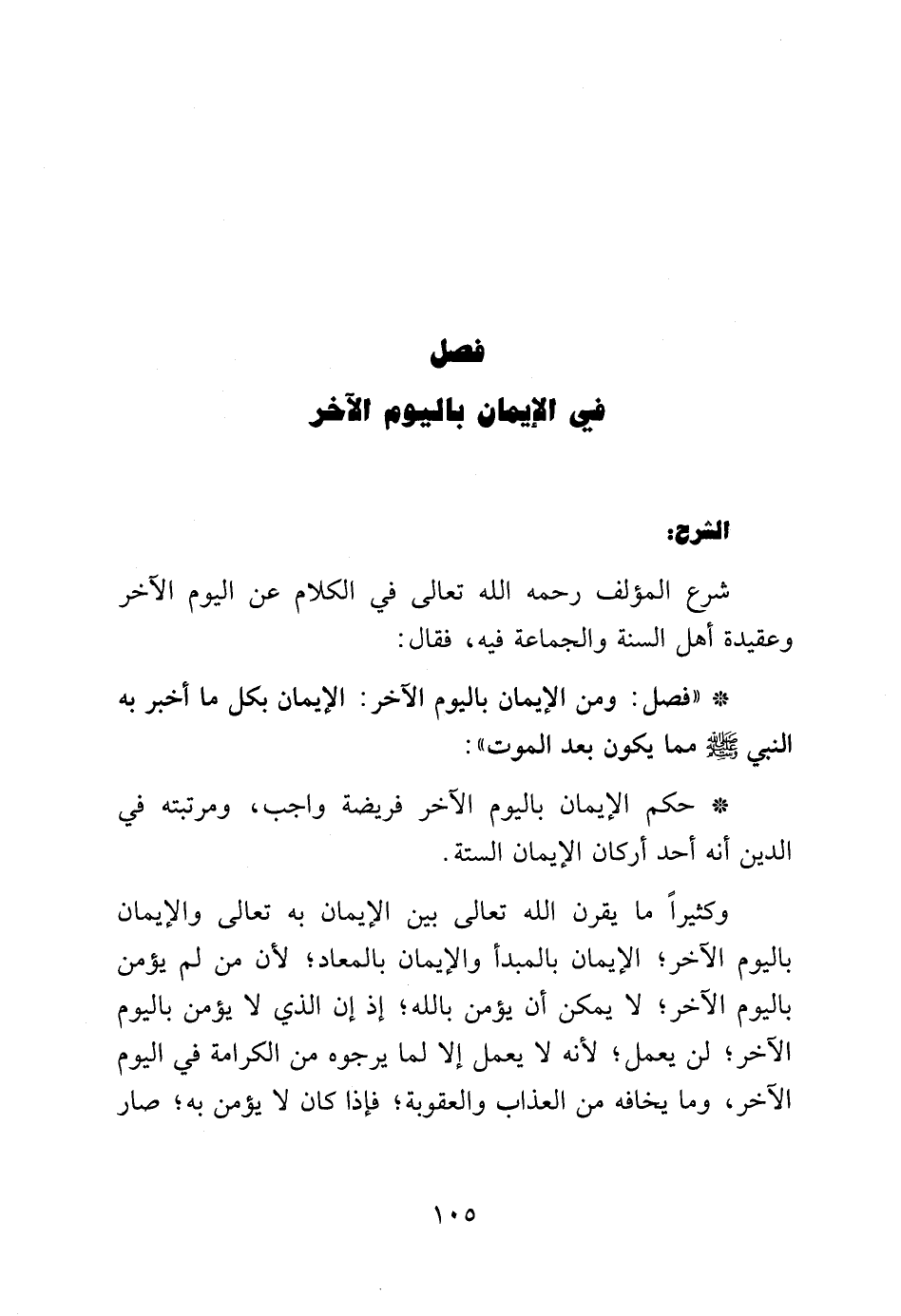 شرع المؤلف رحمه الله تعالى في الكلام عن اليوم الآخر وعقيدة أهل السنة والجماعة فيه، فقال: