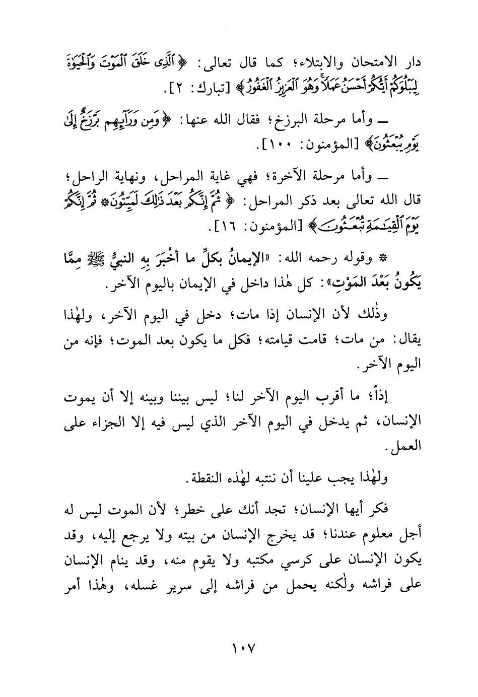* وقوله رحمه الله: "الإيمانُ بكلِّ ما أخْبَرَ بهِ النبيُّ - صلى الله عليه وسلم - مِمَّا يَكُونُ بَعْدَ المَوْتِ": كل هذا داخل في الإيمان باليوم الآخر.