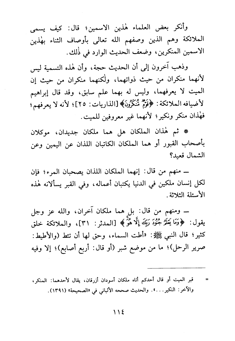 * ثم هذان الملكان هل هما ملكان جديدان، موكلان بأصحاب القبور أو هما الملكان الكاتبان اللذان عن اليمين وعن الشمال قعيد؟