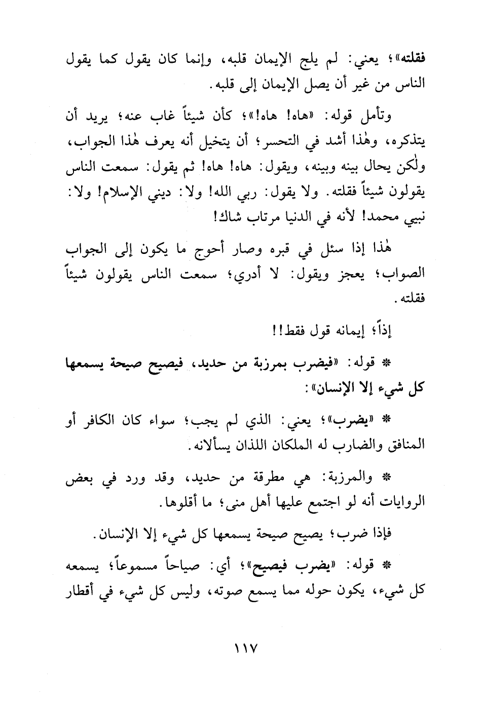 وتأمل قوله: "هاه! هاه! "؟ كأن شيئًا غاب عنه؛ يريد أن يتذكره، وهذا أشد في التحسر؛ أن يتخيل أنه يعرف هذا الجواب، ولكن يحال بينه وبينه، ويقول: هاه! هاه! ثم يقول: سمعت الناس يقولون شيئًا فقلته. ولا يقول: ربي الله! ولا: ديني الإِسلام! ولا: نبيي محمَّد! لأنه في الدنيا مرتاب شاك!