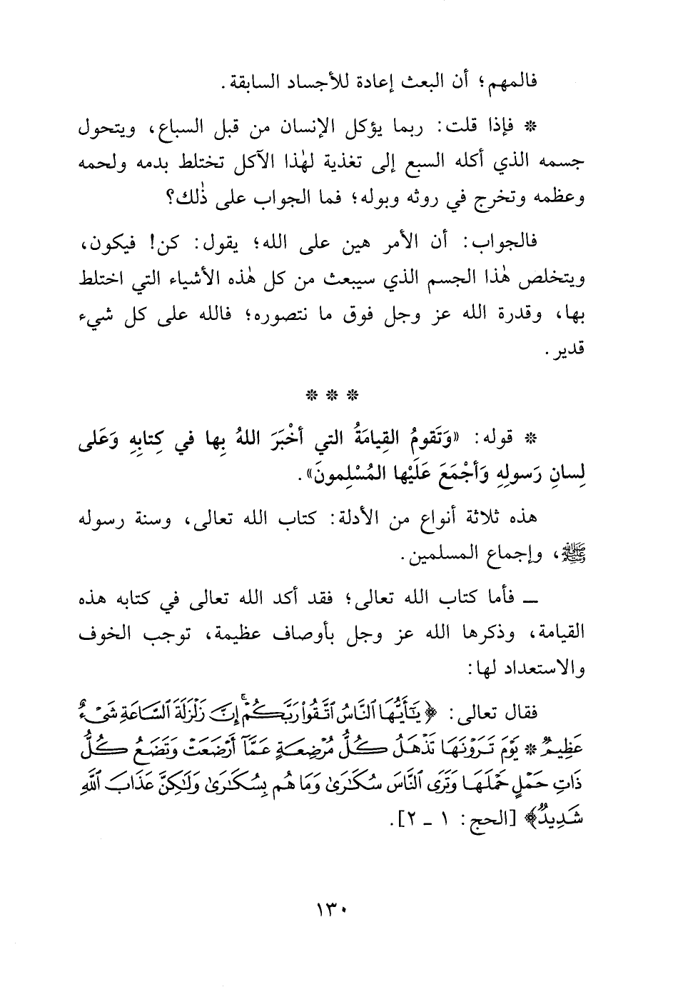 * قوله: "وَتَقومُ القِيامَةُ التي أخْبَرَ اللهُ بِها في كِتابِهِ وَعَلى لِسانِ رَسولِهِ وَأجْمَعَ عَلَيْها المُسْلِمونَ".