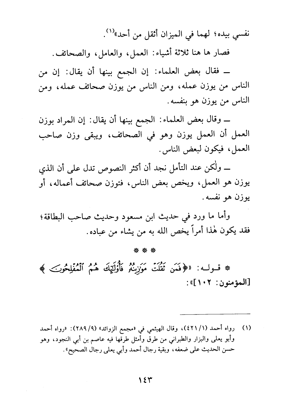 * قوله: " {فَمَنْ ثَقُلَتْ مَوَازِينُهُ فَأُولَئِكَ هُمُ الْمُفْلِحُونَ} [المؤمنون: 102] ":